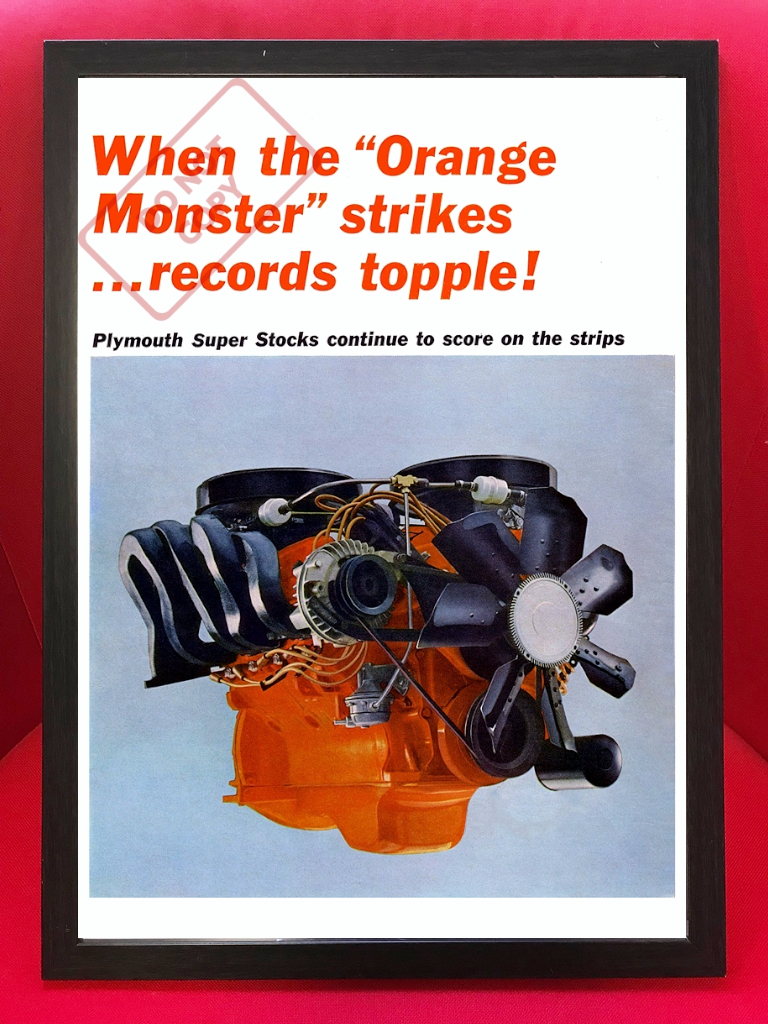 | "426 MAX WEDGE" Advertising Poster" AD4-01 1964年に発表されたPlymouthのスーパーストック用エンジン"426 Max Wedge"『Orange Monster』の広告リプロダクションポスターです。 ポスターサイズ:42cm × 29.7cm (額は付属しません。ポスターのみの出品です。額はA3サイズ用がピッタリです) こちらのポスターは高品質で厚みのあるアートペーパーに美しくプリントされたもので非常にハイクオリティなモノです。クラフト紙や布にプリントしたような粗い画質ではありません。存在感があり、しかも飾るのにも困らない絶妙なサイズですので、お好みのフレームに入れディスプレイするのにも最適です。また、しっかりとした厚みのあるポスターですので、そのまま無造作に壁などにピンでとめるディスプレイのスタイルもおススメです。 趣味の部屋・ガレージ・カフェ・ショップ・Bar・オフィスなどに! ※60's・70's・80'sを中心にマニアックな映画・旧車・バイク・音楽バンド関連などの様々なポスターを多数出品中ですのでチェックしてみてください! Click→映画関係ポスター Click→音楽関係ポスター Click→自動車関連ポスターA Click→自動車関連ポスターB Click→オートバイ関連ポスター Click→その他ポスター | ||