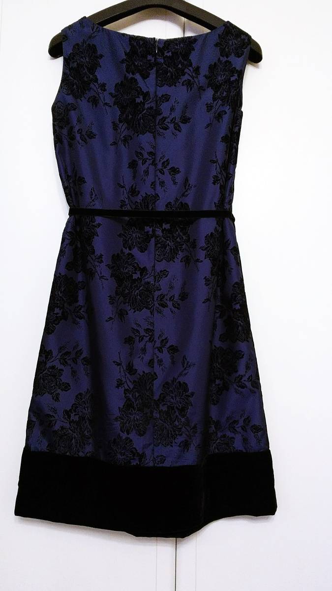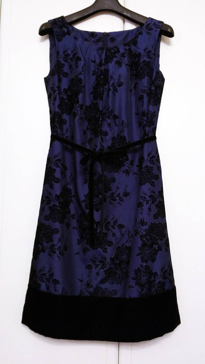 美品 ストロベリーフィールズ ワンピース ノースリーブ パーティー 結婚式 リボン シュガーマトリックス ベルベット 花柄 濃紺×黒