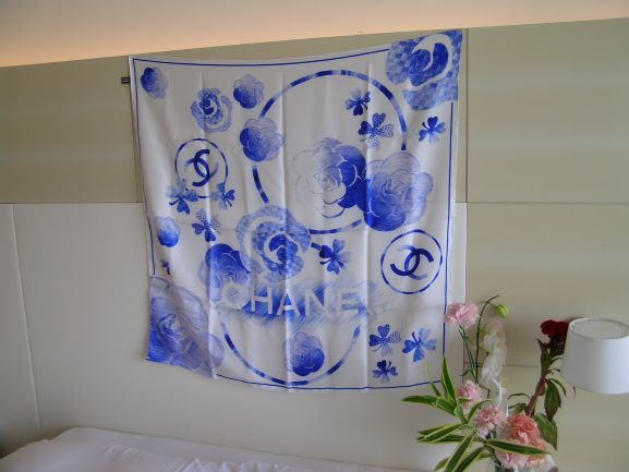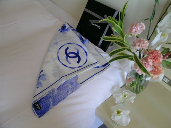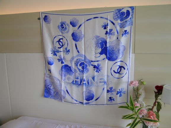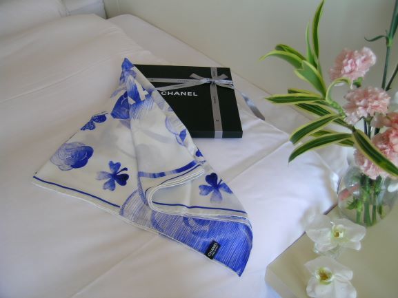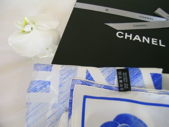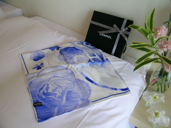★商品名:シャネル・スカーフ花柄・ライトブルー&ホワイト