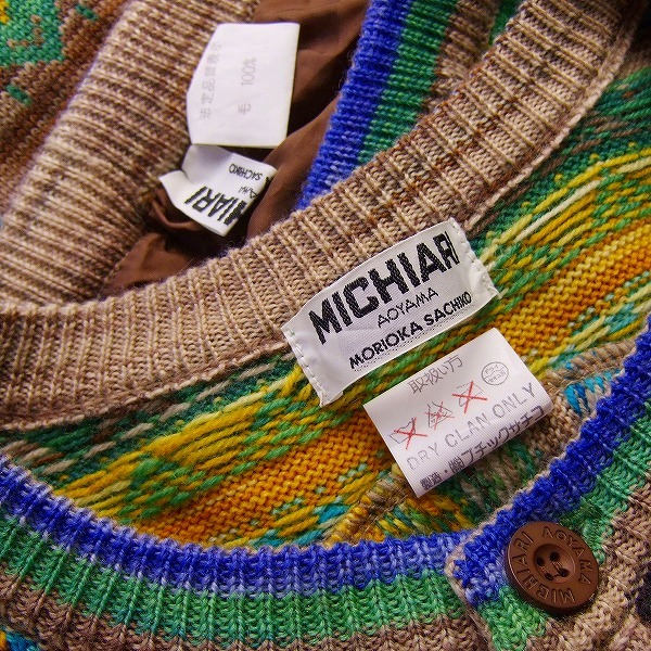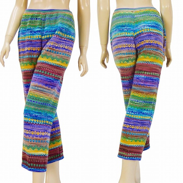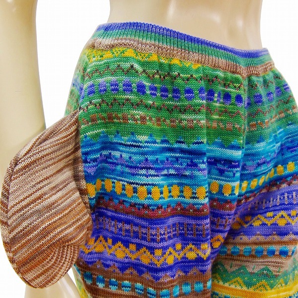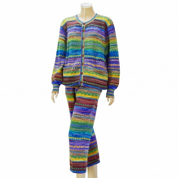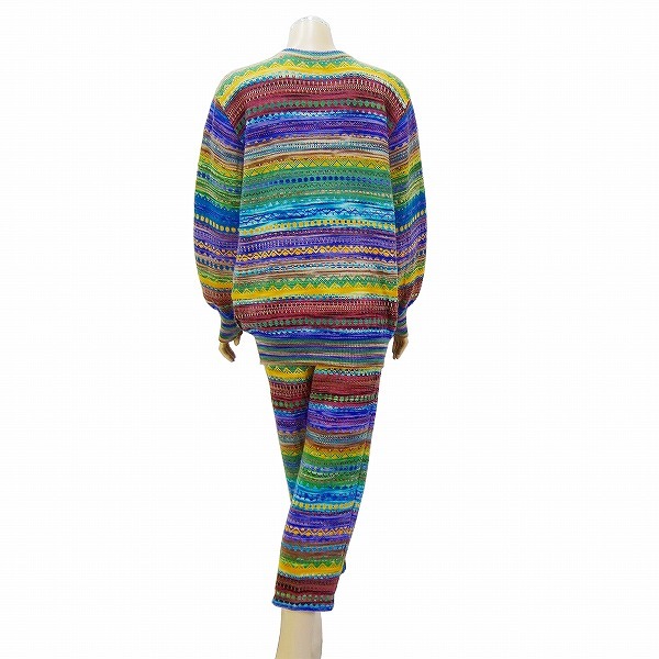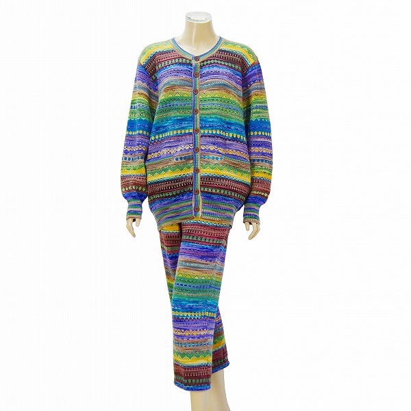 S)新品同様*モリオカサチコ★MICHIARI AOYAMA★最高級ハンドメイド×幾何学柄★極彩ニットパンツスーツ★大きいサイズ★50 2L相当(一重