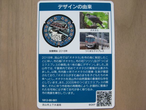 マンホールカード 千葉県 流山市 A001 初期ロット1812-00-001 コースターセット オオタカ つくばエクスプレス 流山上下水道局