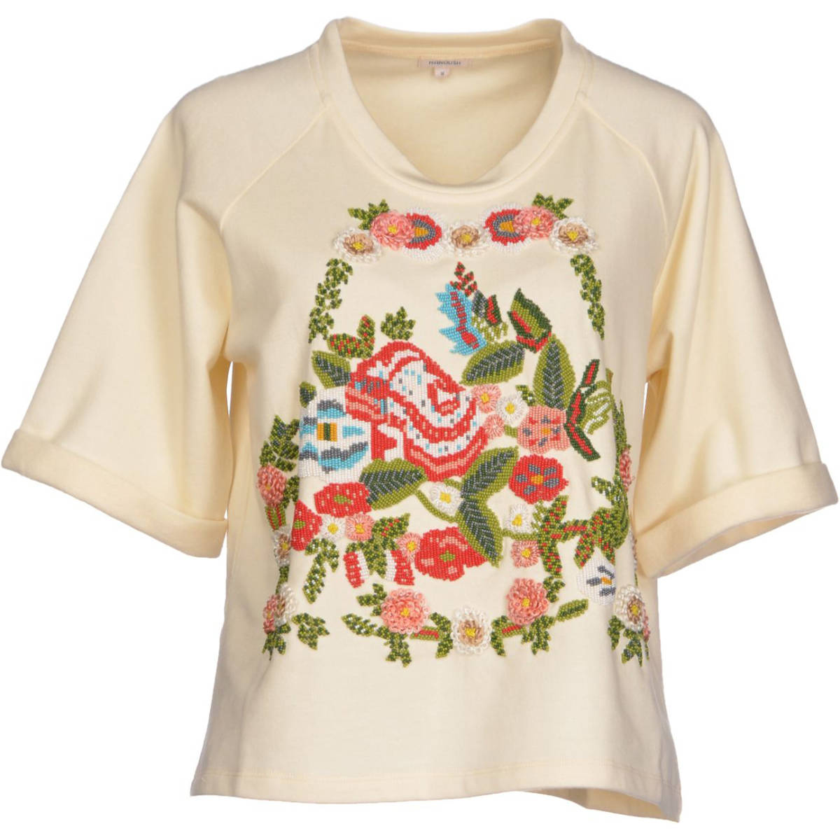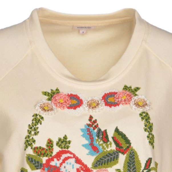 ● MANOUSH マヌーシュ トレーナー トップス S ビーズ 花 白 刺繍 新品 コットン ホワイト 繊細 かわいい 5分丈 上品 ゴージャス 素敵 豪華