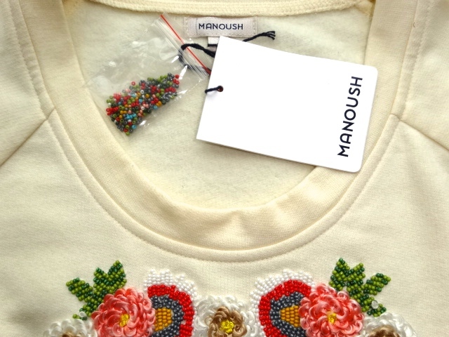 ● MANOUSH マヌーシュ トレーナー トップス S ビーズ 花 白 新品