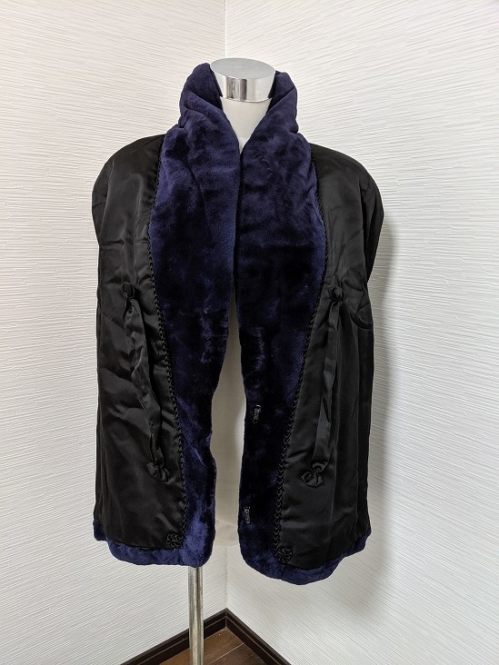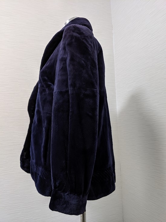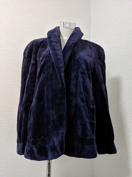 【送料無料】あ731 シェアードミンク 毛皮 ファー コート カーヴィングデザイン ネイビー 青紫 リアルファーコート ポンチョシルエット