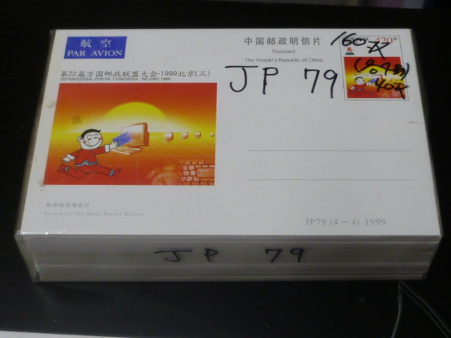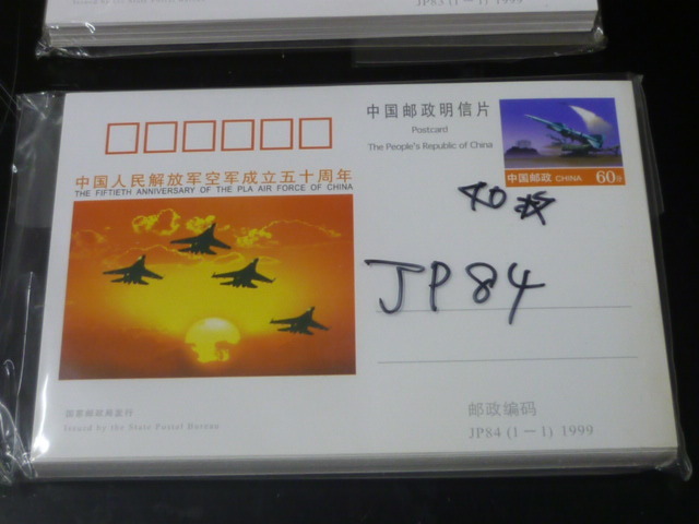 20 P №23A 中国 紀念 はがき 1999年 JP79-81.83-85 420分4種完各40枚・60分各40枚(JP80のみ50枚)計370枚 798元