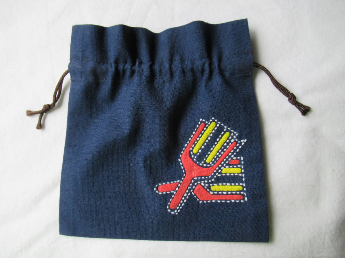 巾着 15x15.5cm 刺し子 藍色