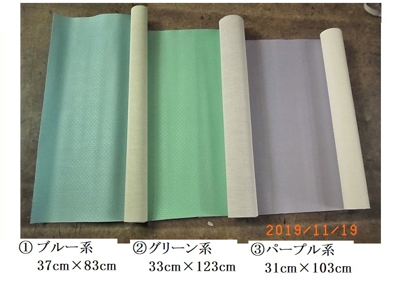 塩化ビニールレザー・パステルカラー系3色カット品3点一括激安処分 | |||||||||||