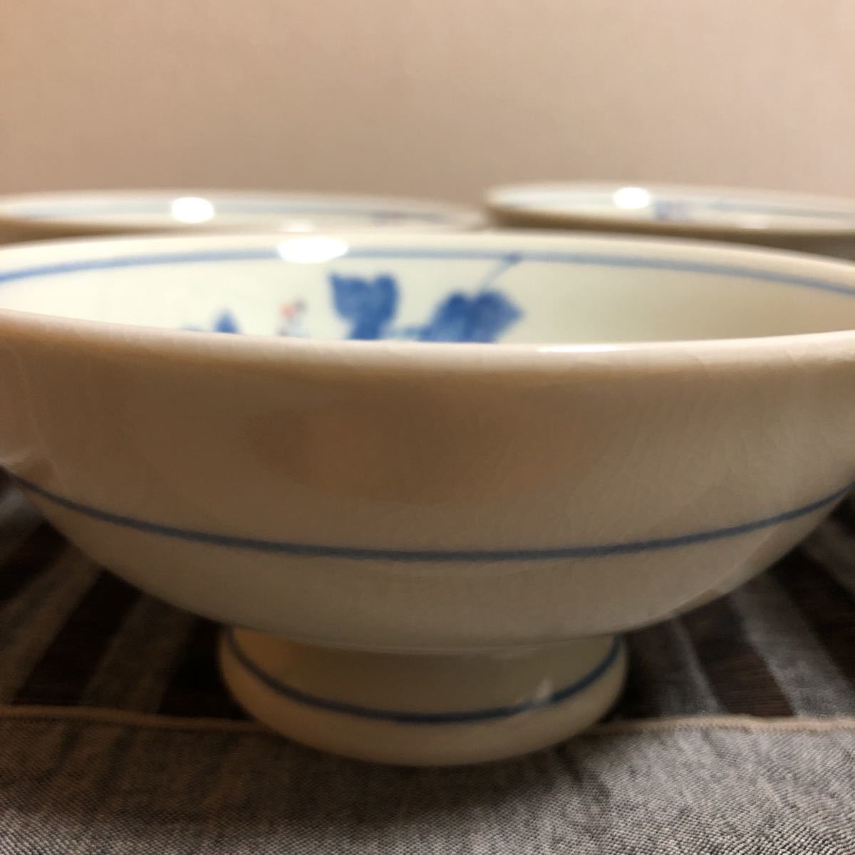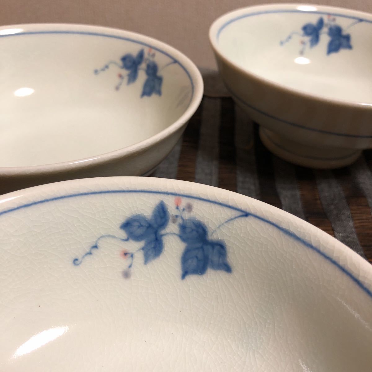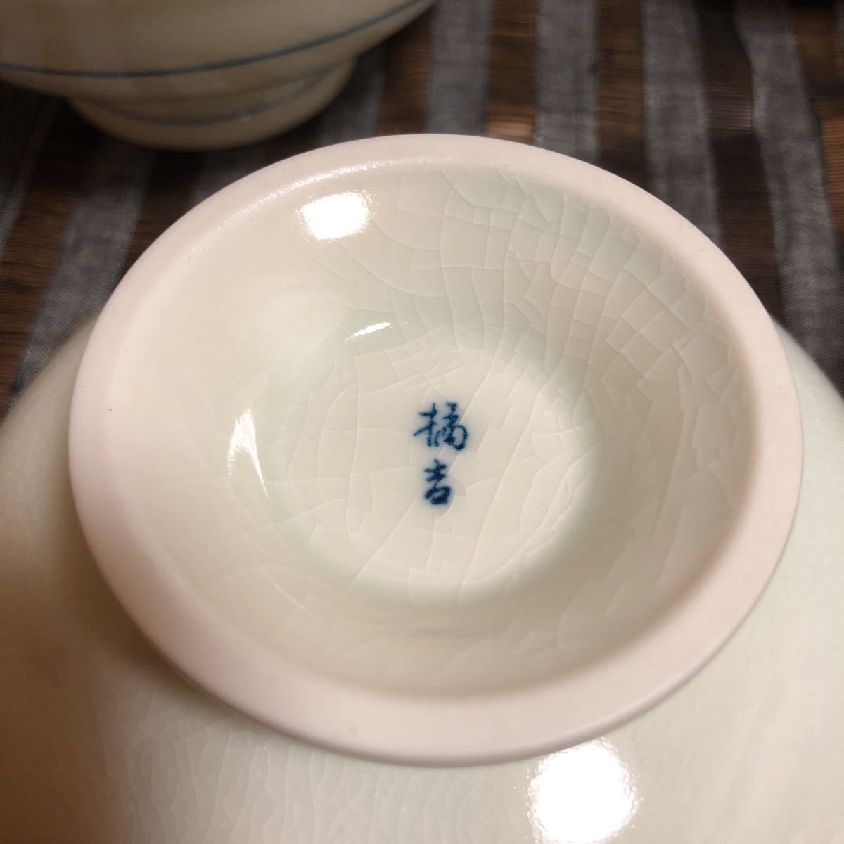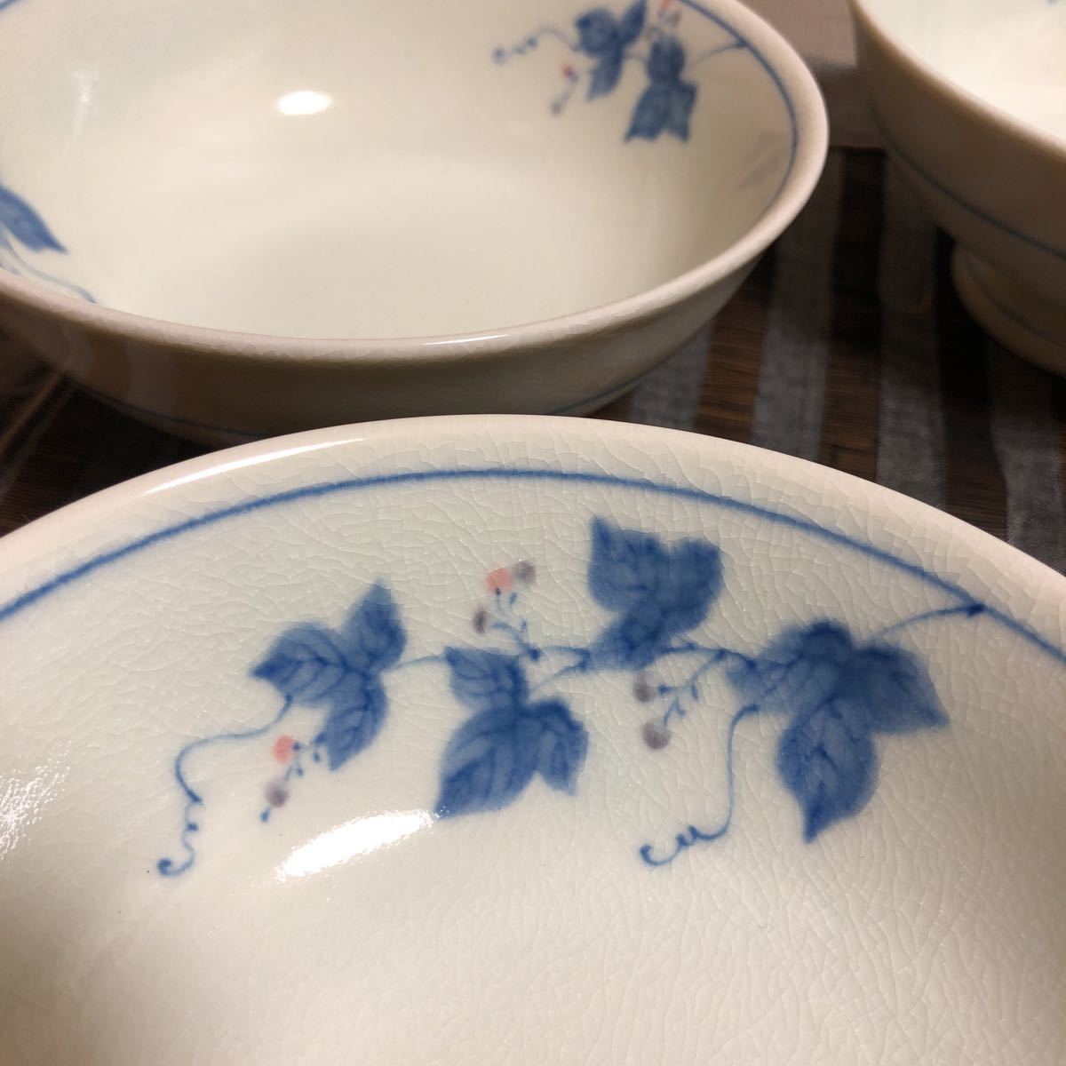 未使用!たち吉 貫入 (ヒビ入) 陶器 5枚 セット 白地に青の花柄小鉢 スプーン5本付き