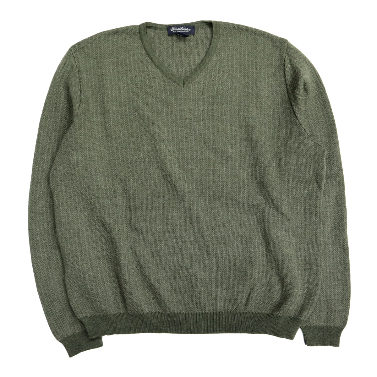 アメリカで購入しました、ブルックスブラザーズのセーターです。イタリア製で、メリノウールを使用した良質な一着です。ヘリンボーンに編まれているのが特徴です。サイズ表記はL、参考までに171cm57キロで大きめになりますので、日本サイズでもLになります。流石はブルックスブラザーズ、上品で大人な印象の一着です!宜しくお願い致します。