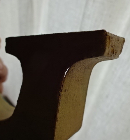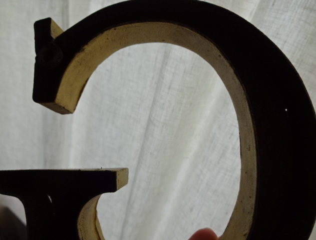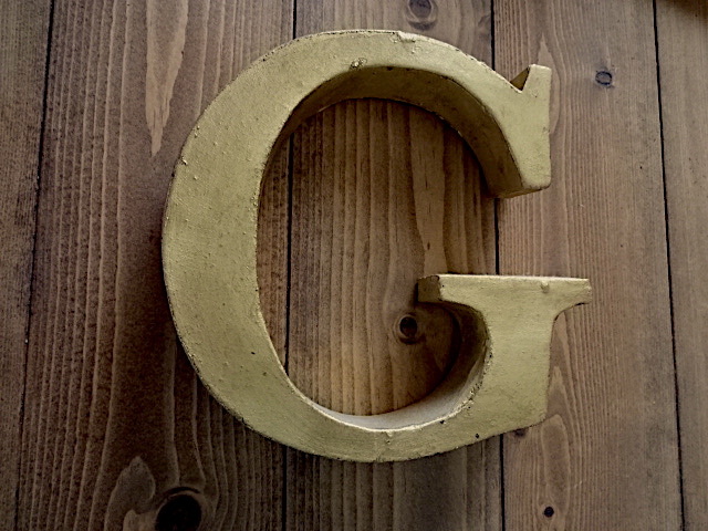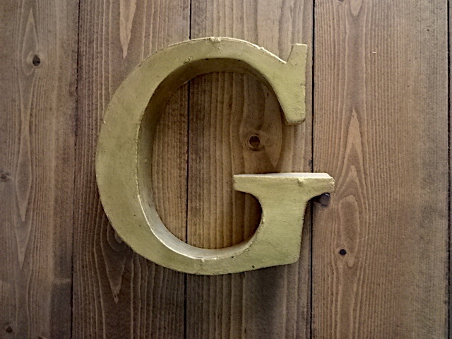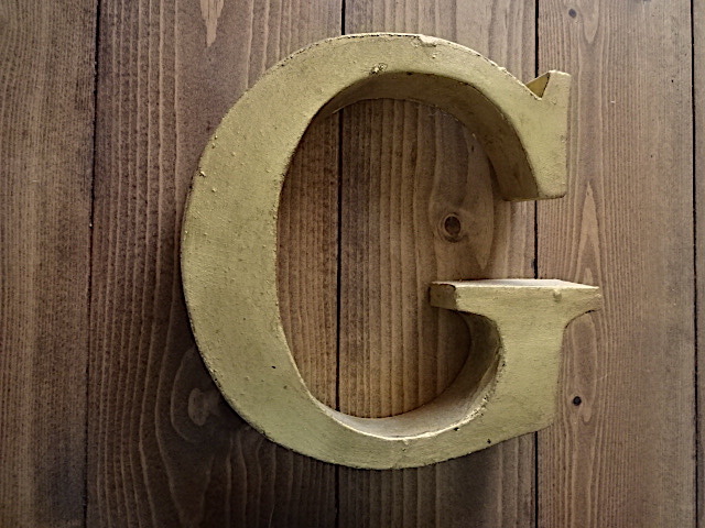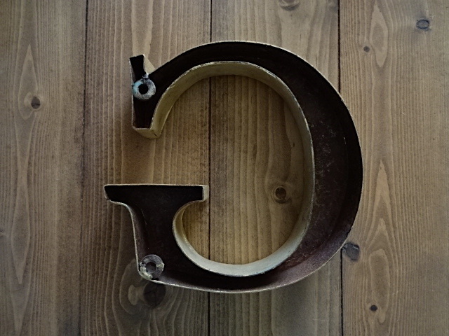 ≪ 商品説明 ≫ 燻したような鈍いゴールドのアルファベット サイン アイアンでしょうか.. 軽くもなく、重くもなく、程よい重み。 立体オブジェになっており、中はよくある空洞。 あえて色を散らして 名前や好みのワードを揃えて飾ってもよいですが、ひとつでも充分 存在感あります。 何もない壁にひとつ足すだけでも 空間の雰囲気が変わります。 自立するので、置いても 空間をワンランク素敵に仕上げてくれるアイテム。 金属の疲労による表裏に抜けた極小の狭穴が2点(2箇所の位置画像6/各自拡大画像7,8)ございます。 裏面サビがみられますが滑らかです。(画像5) その他、多少の剥がれ等 ありますが年代を鑑みると比較的よい状態といえます。 上記ダメージ特に目立って気になるようなものはなく、アンティークの良さをひきたてています。 くすんだ色合い 昼と夜で少し色味が違って見え、印象も変わります。 程よいサイズ感で雰囲気のあるアルファベット お探しの方がいましたら、是非。。 アンティークものにご理解いただける方へ…。 ≪ サイズ ≫ H/Wおよそ15.5 cm D2.5cm ≪ 発送詳細 ≫ 国内/郵パック ≪ 支払詳細 ≫ yahoo決済 | ||