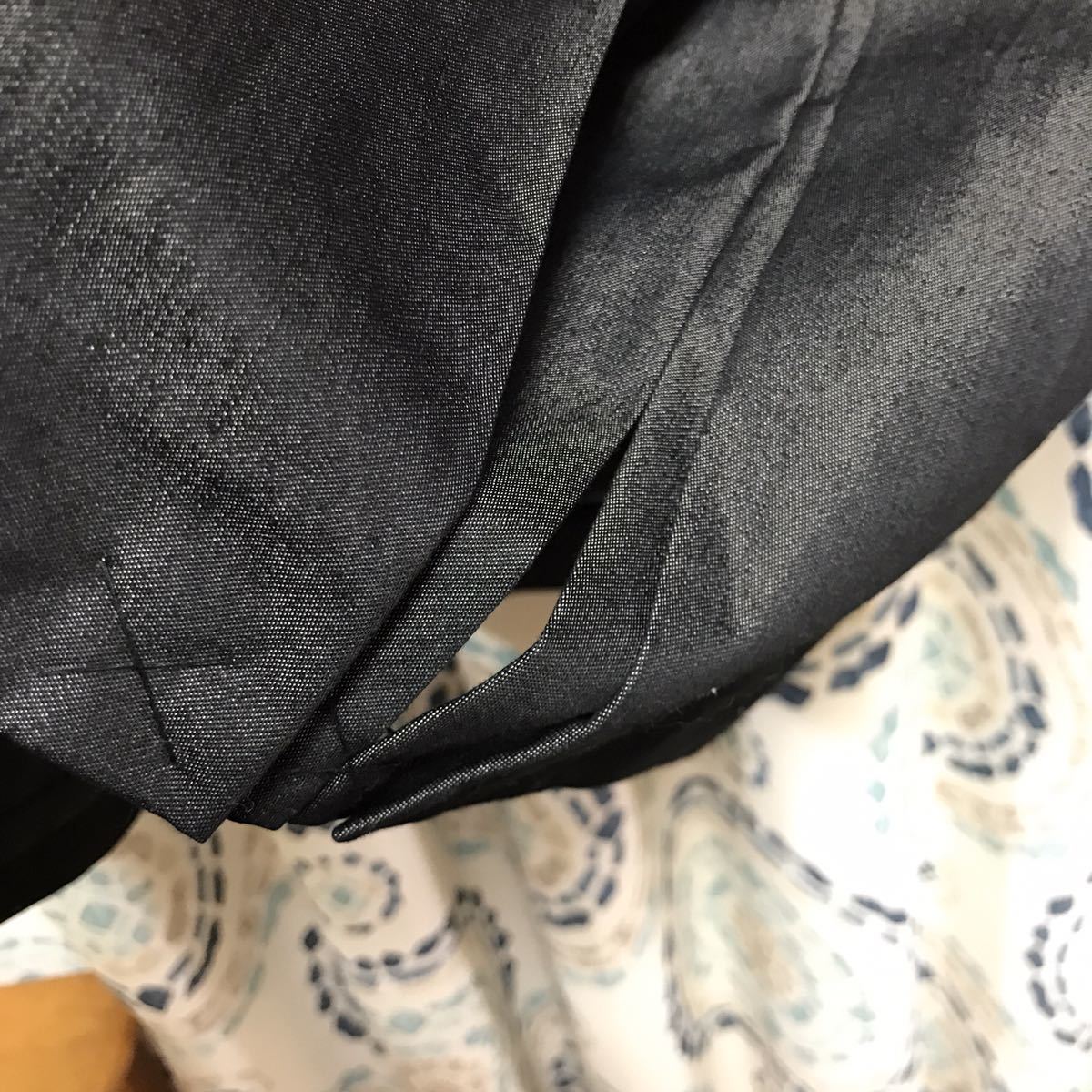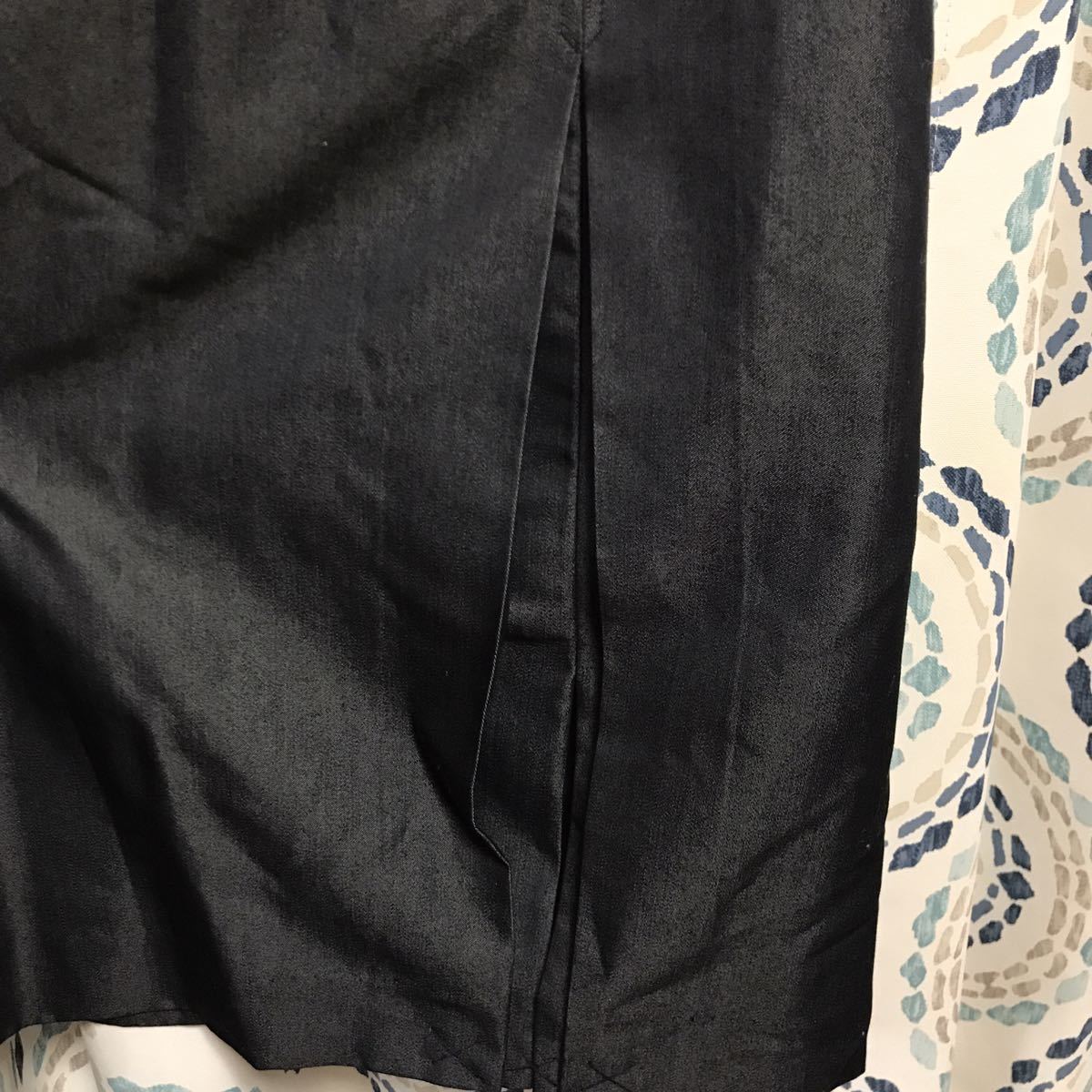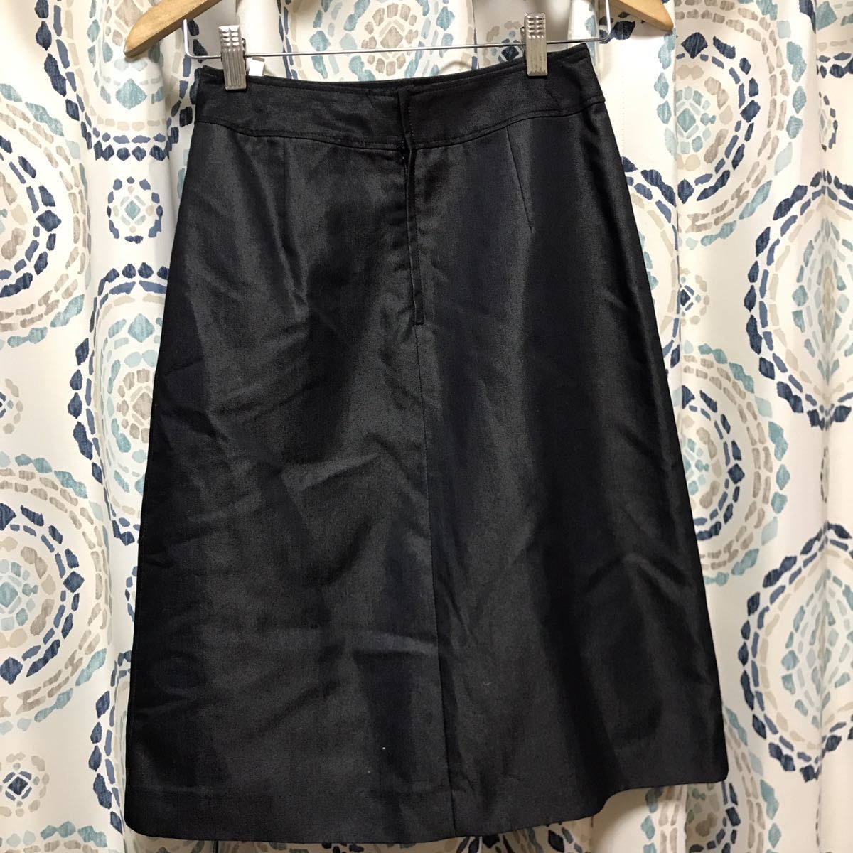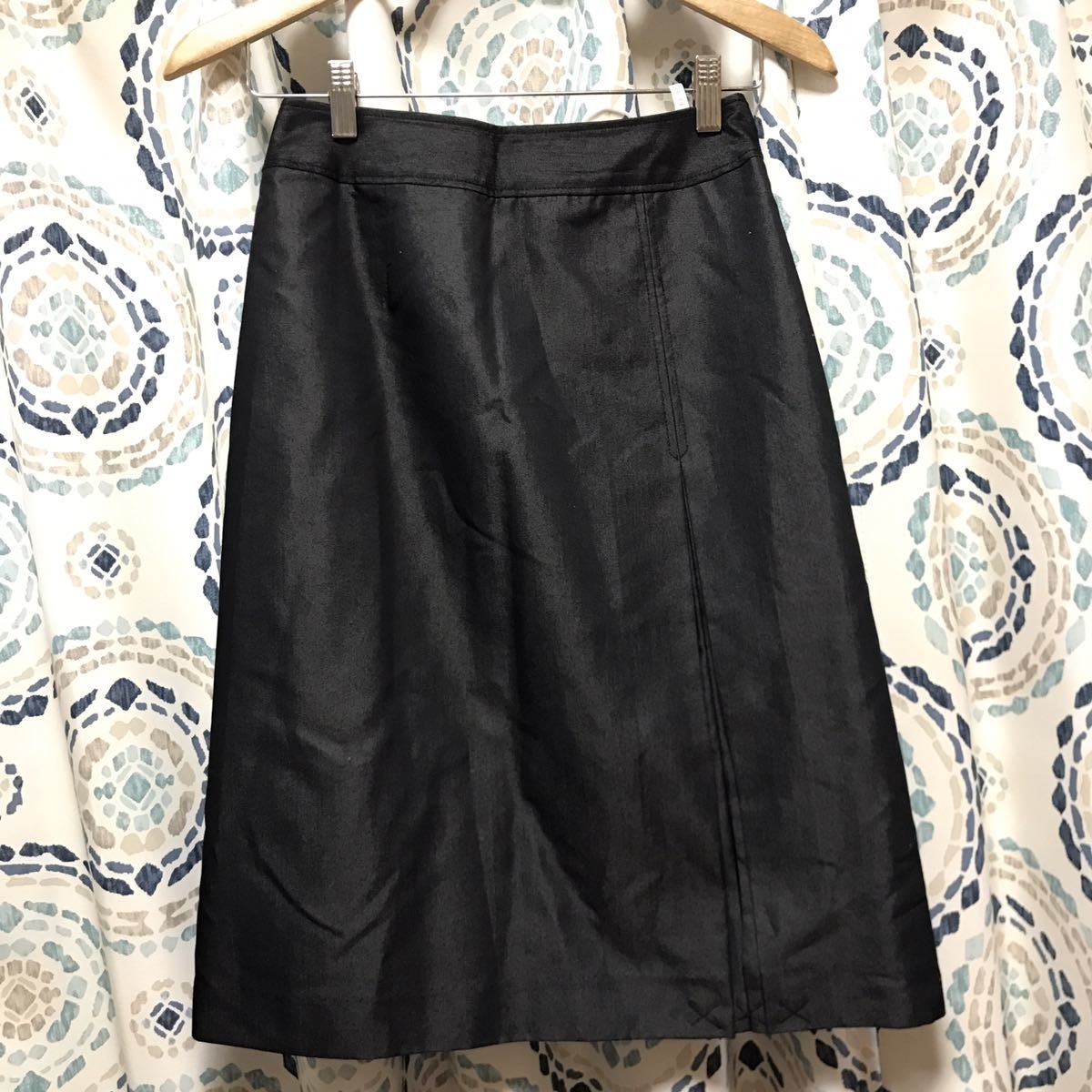 ◆スリットはしつけ糸がついていますが左足側裾になります♪黒っぽく写っていますがデニム調のネイビーカラーで少し光沢あるシャンブレー素材♪大人カジュアルな膝丈スカート