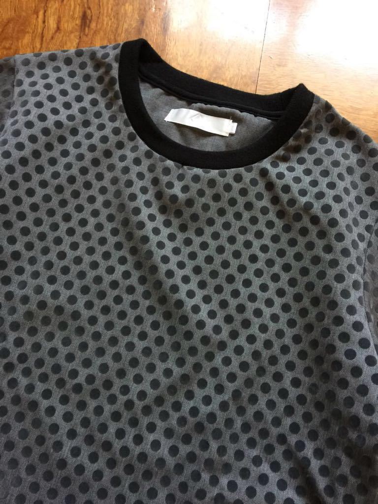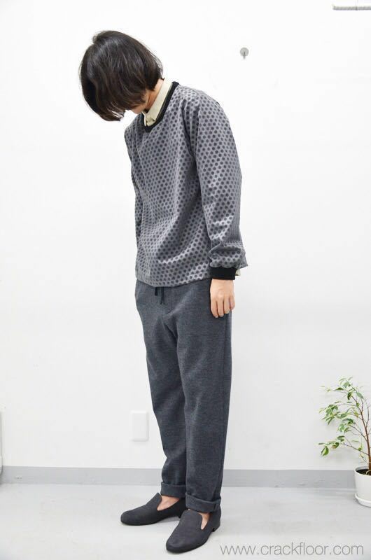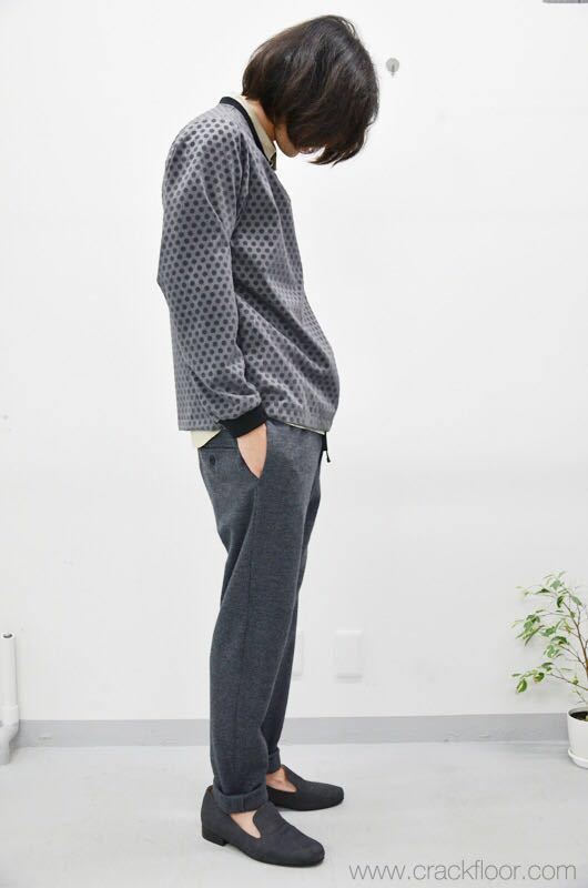 14AWシーズンオリジナルのフロッキードットが可愛いウールトップスです。日の当たる角度で光沢感が異なる素敵な一品。スーツ地のスウェットといったところが、乙なアイテムです♪