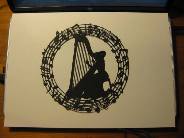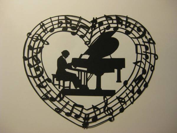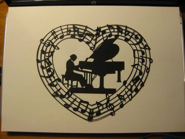 切り絵 ハート音符+切り絵  壁飾りにも
