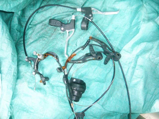 ★商品説明★ | ★携帯からご覧の方及び発送料を聞く方がいらっしゃいますが送料等発送情報等下にありますので最後までよくお読み下さい。 ★評価の悪い方及び新規の方のご入札は1度質問コーナーよりご連絡下さい。 ご連絡の無い方のご入札はイタズラ・トラブル防止の為此方の判断で削除する場合がありますご了承下さい。 ★宅配便発送分及びゆうパックの場合必ずお読み下さい★ ※集荷・配達不可地域につきましては、予告無く変更となる可能性がございます。 お急ぎの方、遅延にご理解いただけない方は入札ご遠慮ください。ご落札の方には、 状況が判明次第ご連絡をさせていただきます。 大変ご迷惑をお掛けいたしますが、ご了承の程よろしくお願い申し上げます。 ★リペア用・ジャンク品・部品取り品ですので、完全クレーム対応致しません。ジャンク品の意味の判らない方 保証等お考えの方はお店で整備された物をご購入下さい。 ★後で細かなクレームが多いので、そうゆう方は新品を購入してください、この商品は十分な点検は出来てません。 ★完全クレーム対応致しません。保証等お考えの方はお店で整備された物を ご購入下さい。現状販売です。(現状販売の意味の判らない方はご遠慮下さい。) ★商品の詳細は文字では説明出来ない部分が有ります。ごくまれに、説明文に無い等アゲアシ取りをされる方 や神経質な方は、ご遠慮下さい。ご入札は良くお考えの上宜しくお願い致します。 ★バイクや自転車・車の部品は消耗品です。完全クレーム対応致しません。保証等お考えの方はお店で整備された物を ご購入下さい。現状販売です。(現状販売の意味の判らない方はご遠慮下さい。) ★こちらのカテゴリーに出品しておりますが違うかも知れません。判る方お願い致します。 ★当方まったく判りません、壊してしまう恐れがありますので未清掃・現状のまま発送致しますので 神経質な方及び上記のジャンクが判らない方のご入札はご縁下さい。 ★オブジェ・部品取り等活用出来る方お願い致します。 ★オイル・カーボンだまり等有る程度はパーツクリーナーにて落としましたが細部や落とせていない部分が 有りますので神経質な方はご遠慮下さい。ご自身で綺麗にして下さい。 ★メーカー不明 V・キャリパー混合ブレーキ&シマノ レボシフト6段セット。 ★タイプ:TOP ONEと書いたクロスバイクの自転車から取り外しました。 ★型式:不明。 ★左右ブレーキレバー:メーカー不明。焼け・キズ・サビ等有ります。材質:アルミ製。 ★ブレーキ本体:メーカー不明。焼け・キズ・サビ等有ります。材質:両方共スチール(鉄)です。 ★ブレーキのゴム(シュー)はおまけ程度ですので交換をお願い致します。 ★シフトレバー:6段。シマノ レボ シフト。焼け・キズ・サビ等有ります。材質:プラスチック。 ★見た目では曲がり無いように見えますが計測器・自走にて確かめてはいませんので不明とさせて頂きます。 ★ネジ類:サビ有りますのでおまけとお考え下さい。要らない方は落札の際お申し付け下さい、外してお送り致します。 ★プラスチック部分硬化が始まっていますので型取りか、取り敢えずの使用には問題ありませんが神経質な方はご遠慮下さい。 あくまで型取り用ですので過度の期待はご遠慮下さい。 ★ワイヤー類は消耗品ですので到着後切れている等のクレームは対応致しませんのでご了承下さい。 あくまでおまけ程度にお考え下さい。 ★ワイヤー類は付いてる場合おまけ程度にお考え下さい。無い場合新品を自転車専門店・ホームセンターにて お買い求め下さるか既存のワイヤーをお使い下さい。 ★サビ等有りますのでサンドブラスター後塗装・活用して下さい。 ★金属部分:サビ有ります。 ★キズ・シミ・サビ多し・メッキ剥がれ有り。 ★曲がり等無しですが測定器で調べた訳では有りませんので不安な方・神経質な方はご遠慮下さい。 ★他に割れ欠け見当たりませんが細かい部分は未チェックですので大事な部分はご質問で確認して下さい。 ★発送は記載されているのみです。他の発送は不可になります。梱包代を含んだ金額になりますので、 ご理解頂いた方のみご入札下さい。実際の重量・サイズとは異なります。 ★質問で確認のない欠け割れ部分は対処致しませんのでお気を付け下さい。 ★全体に年相応のキズ・焼け・シミ・サビ等あります。飾る分には問題有りませんが神経質な方はご遠慮下さい。 ★全体にキズ・シミ・サビ等有ります。部品取り・塗装等してお使い下さい。 ★評価の悪い方及び新規の方のご入札は1度質問コーナーよりご連絡下さい。 ご連絡の無い方のご入札はイタズラ・トラブル防止の為此方の判断で削除する場合がありますご了承下さい。 ★このての分野にあまり詳しくありません又中古品に尽きあまり細かい点までは記載しておりません。 ★分解しての点検まではしておりませんので気が付かない部品・欠品等説明に無い足らない部品・使い方等あるかも知