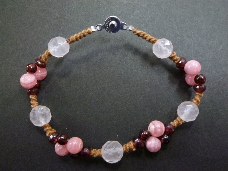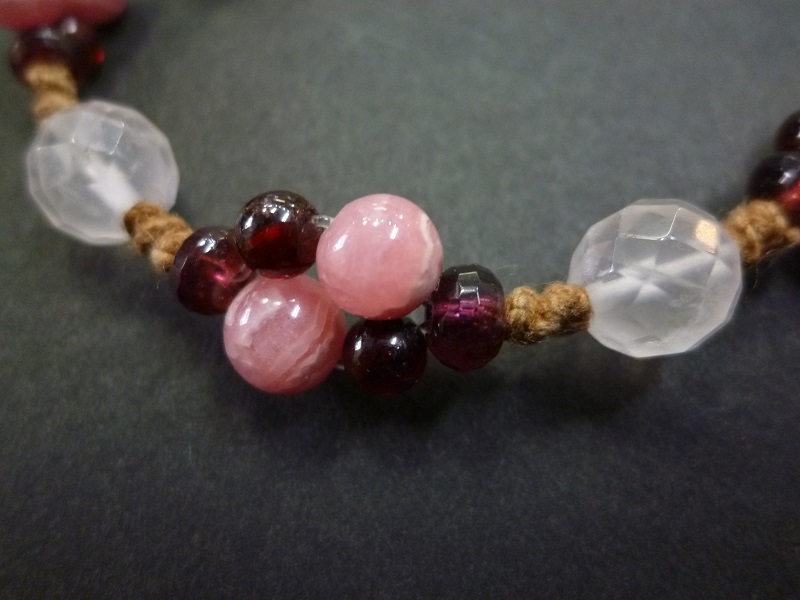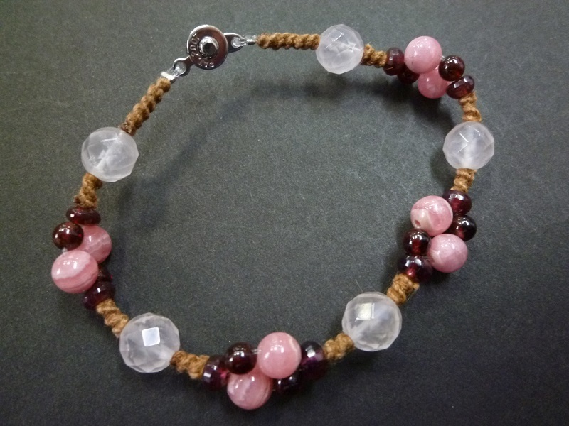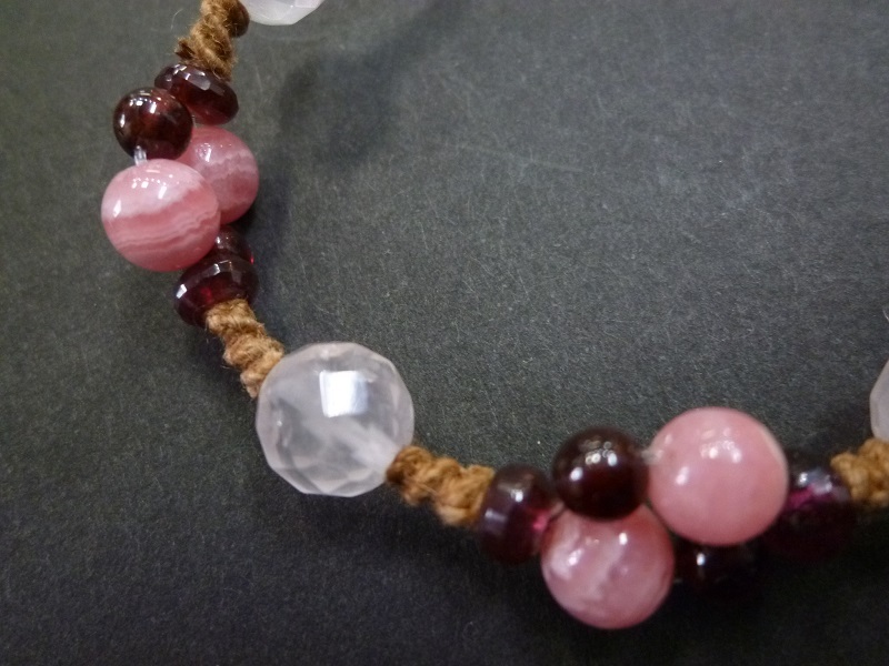 ローズクォーツ インカローズ ガーネット 手編みブレスレット