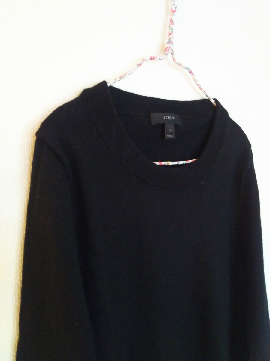 s598 美品!きれいめアイテム ■J.crew■ ジェイクルー 黒 サイズS 極柔 羊毛100% ニットセーター 七分袖 身幅41 着丈64 肩幅31 袖丈44