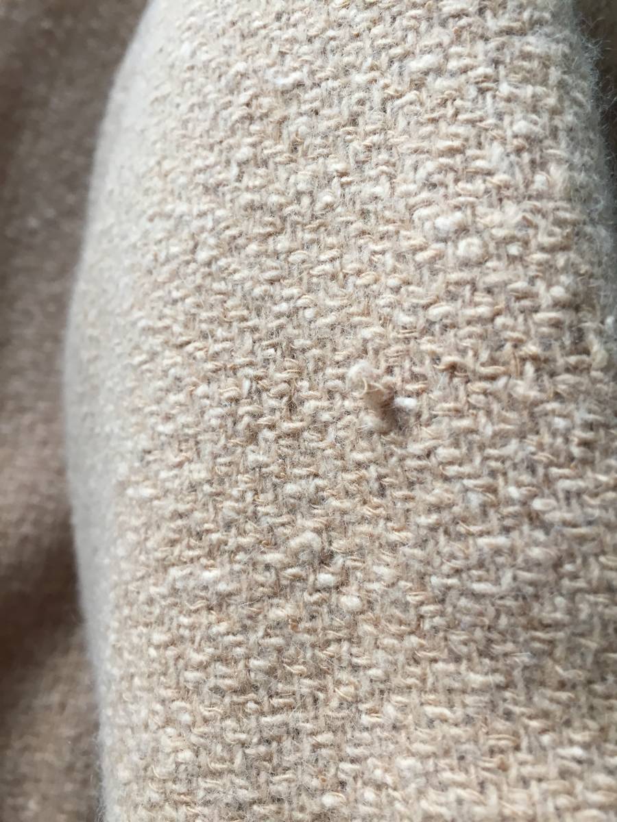 左袖に目立たない糸ほつれがあります(8枚目の写真を参照してください)が、全体としては特に傷みや汚れはなく、きれいです。