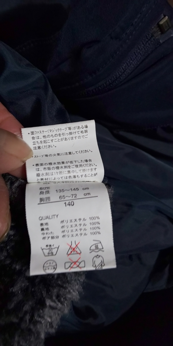 サイズ 140 身幅51cm.着丈77cm.後ろ反射板有り