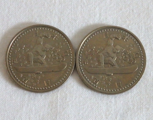 記念硬貨 コイン 長野オリンピック スノーボード 500円 2枚セット です。
