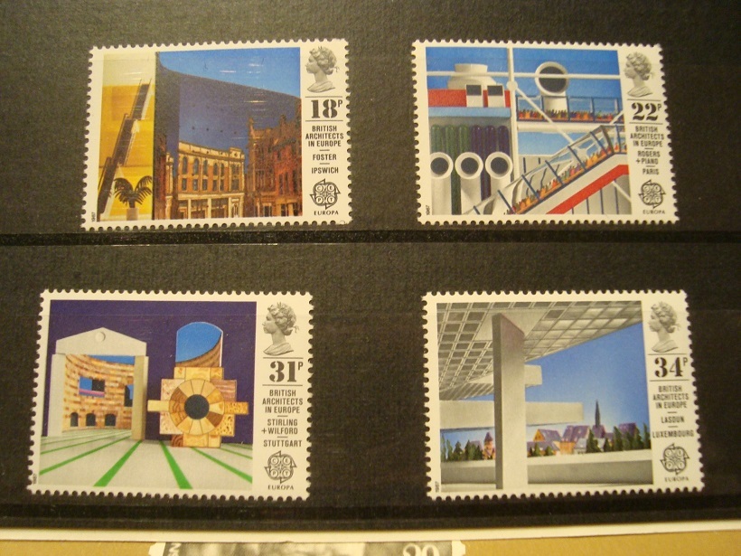 英国政府1987年発行 デザイン;国際的に有名なイギリスの建築家デザインの建築 未使用品4枚
