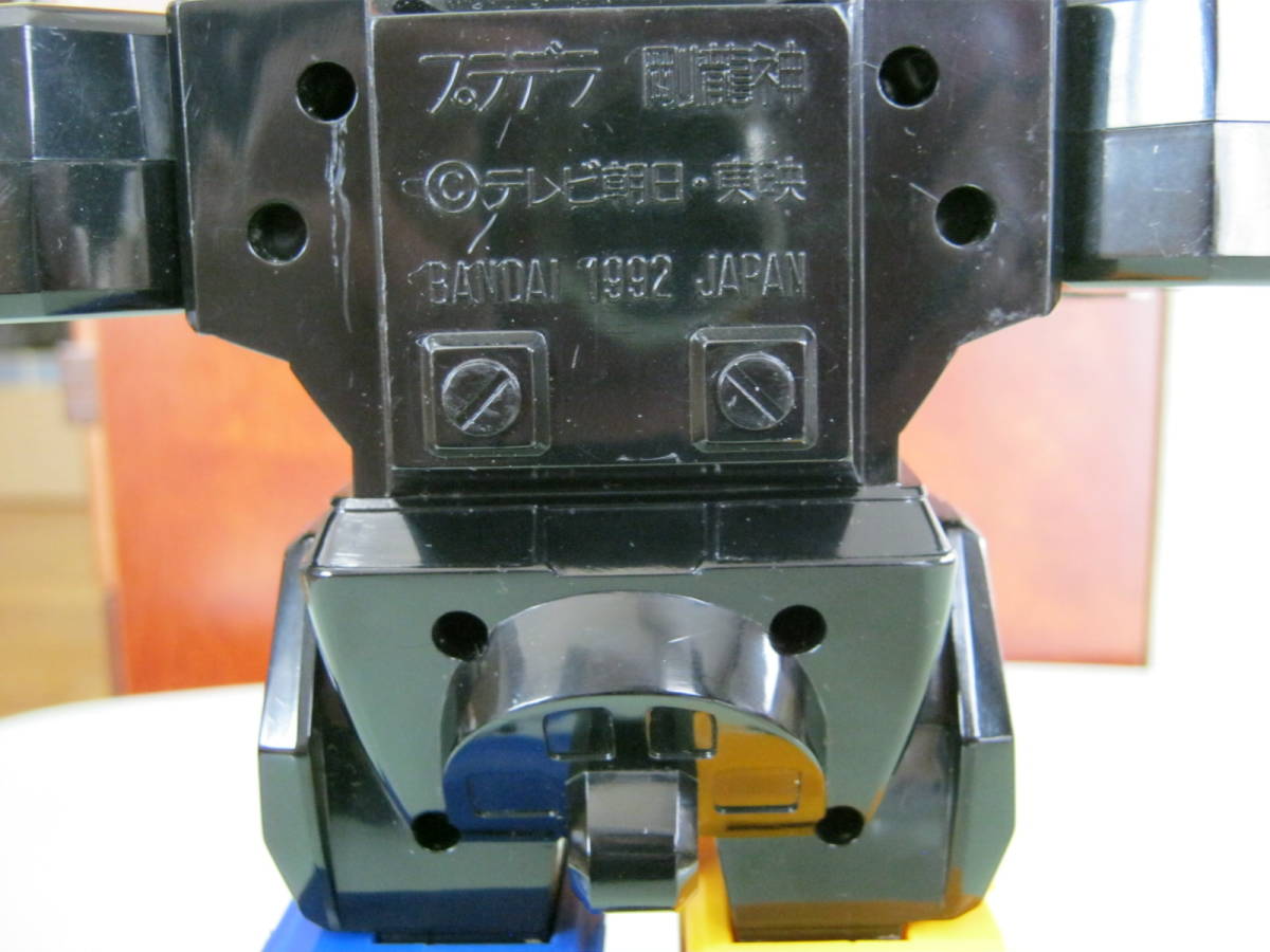当時物です。中古品です。本体のみです。箱、付属品はありません。ジャンク品です。写真の物が全てです。部品取り、再生用です。状態は汚れ、キズ、色ハゲ、シールのハゲ、部品の欠品があります。部品の欠品は判る部分のみ記載致しますが写真で判断お願い致します。欠品は左右の腕の飛び出す手のパンチが欠品しています。付属品等が欠品しております。本体の背中の部分に刻印があり刻印はプラデラ 剛龍神 丸の中にCの文字テレビ朝日・東映 BANDAI 1992 JAPAN以上の刻印があります。サイズは約23.5㎝位です。以上判るだけ書きましたが写真、質問等で判断お願い致します。落札後はノークレーム・ノーリターンでお願い致します。