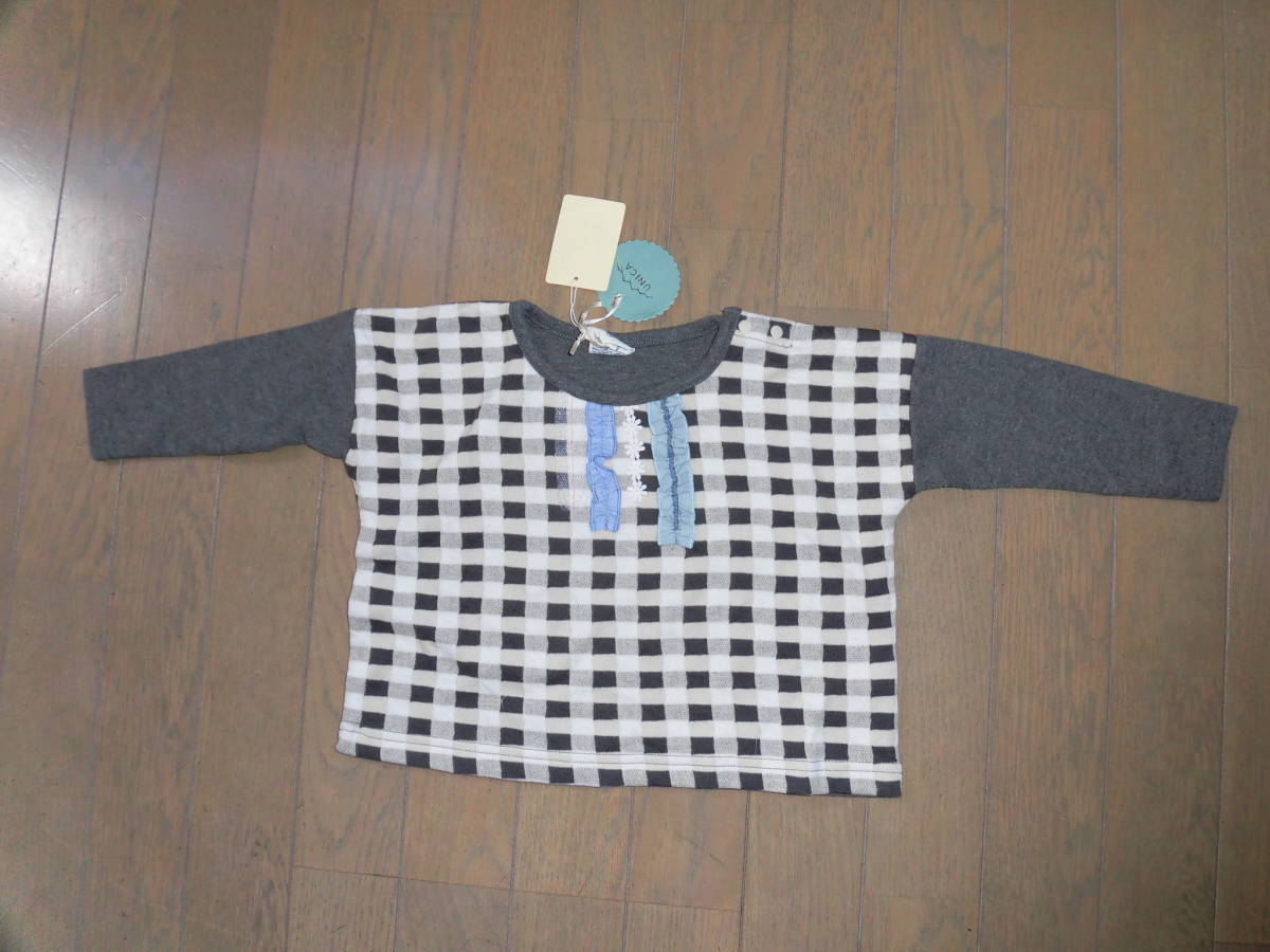 商品説明 新品★UNICA ユニカ★グレーチェックの長袖Tシャツ★90 、定価4600円+税