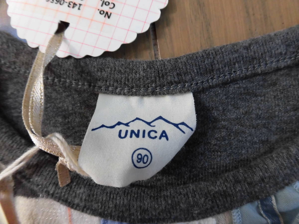 新品★UNICA ユニカ★グレーチェックの長袖Tシャツ★90 、定価4600円+税