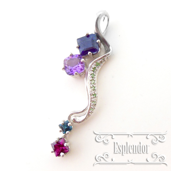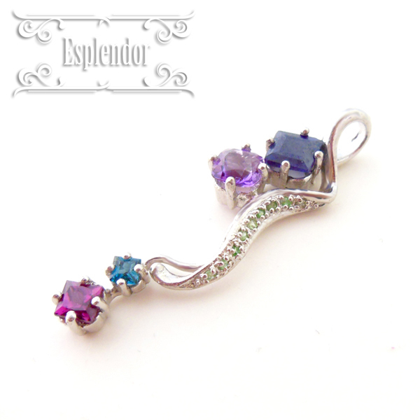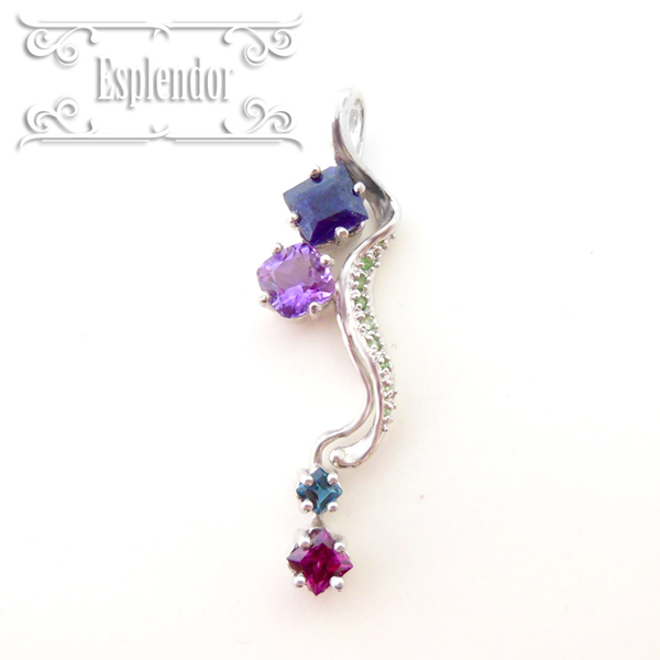 サファイア・アメジスト・トパーズ・ピンクロードライトガーネット シルバーアートペンダントA |