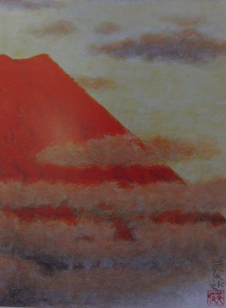 岩橋 英遠、赤富士、希少な額装用画集より、新品高級額装付、状態良好、送料無料、choco