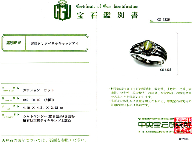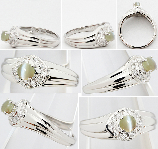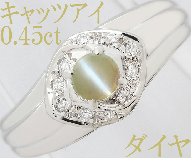 | 綺麗 上品☆キャッツアイ 0.45ct ダイヤ 0.09ct Pt850 プラチナ リング 指輪 クリソベリル 11号♪鑑別書付・送料込 | ||