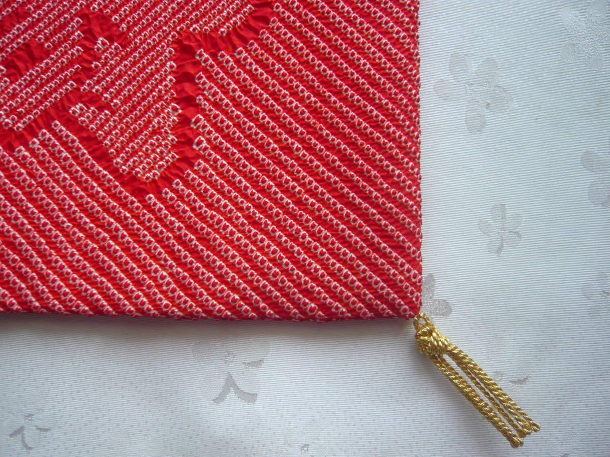 | ★ 商品名 *未使用美品★御富久紗★ふくさ 袱紗★絞り 寿&無地 約30×27cm ★帛紗 冨久紗 朱色地★和柄★2593 |