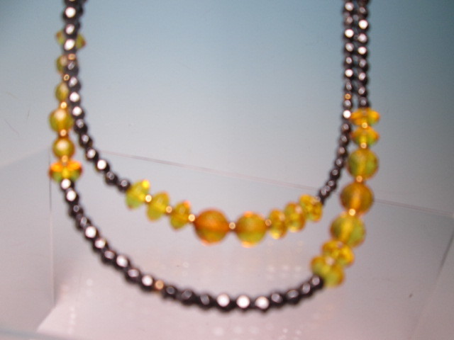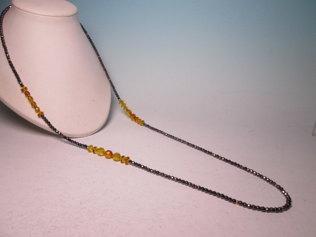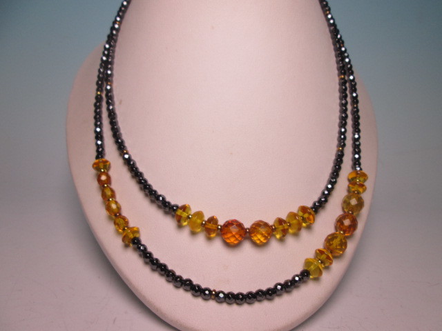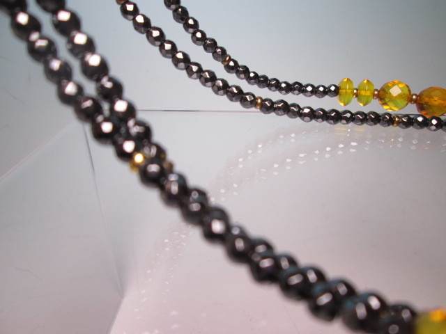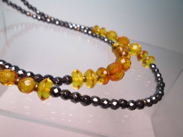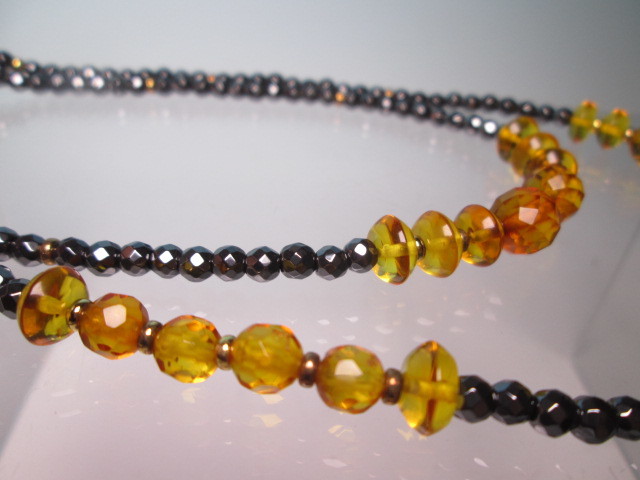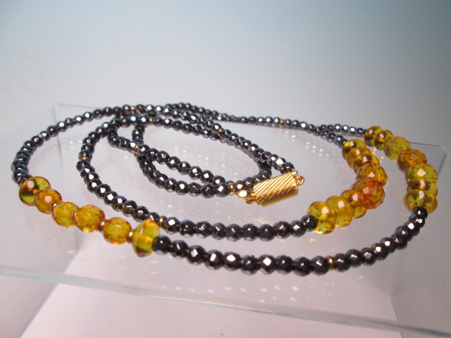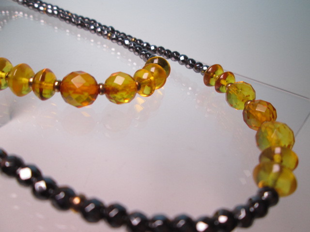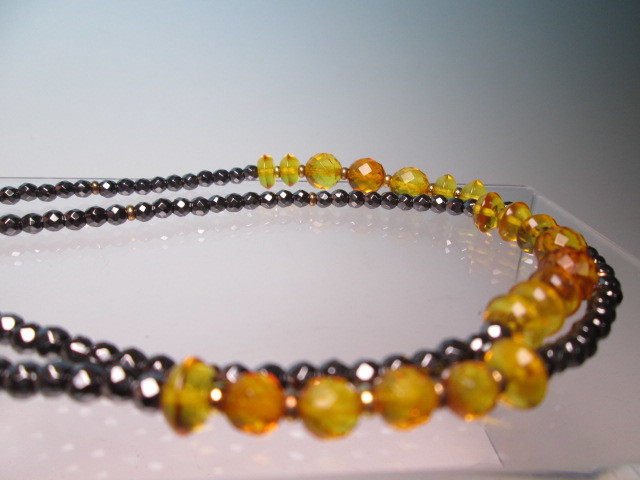☆天然琥珀&マーカサイトの金飾りロングネックレス 42g