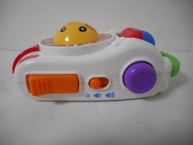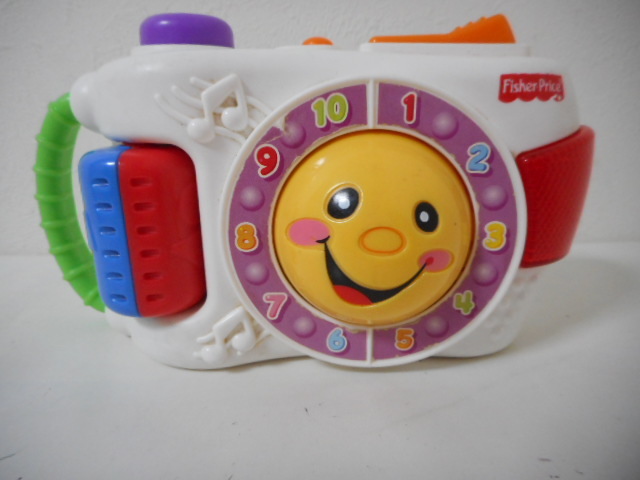 【ブランド・形態】 フィッシャープライス ラーニングカメラです。 【特徴】 4曲のメロディやゆかいなサウンド、ライトアップで楽しく学べる! ローラーやボタンなど指遊びもいっぱいでフラッシュがライトアップします。 4曲のメロディとゆかいなサウンドがカメラごっこを盛り上げます。 音量調節機能付きなので、小さな音でも遊べます。 対象年齢:6ヵ月から 電池:単3乾電池×2本(電池は別売り) 【状態】 少々使用感はございますが、特に目立つダメージは見受けられず、使用に問題無いと思われます。動作確認済です。 【サイズ】 縦9×横16×幅7cm、 質量200g | |||