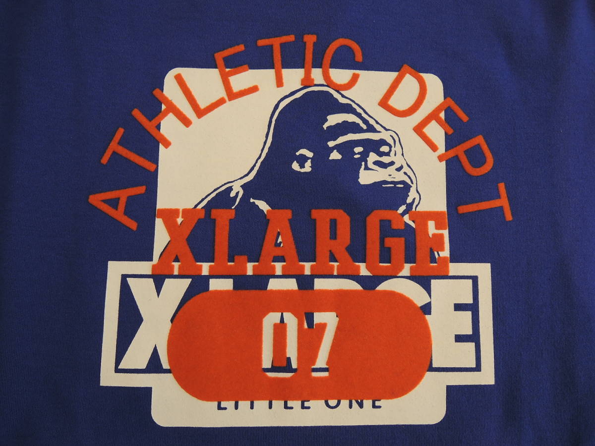 X-LARGEの人気アイコンのOGゴリラのプリントの上からさらにカレッジ風のロゴをフロッキープリントを重ねた凝った作りのアイテムです。
