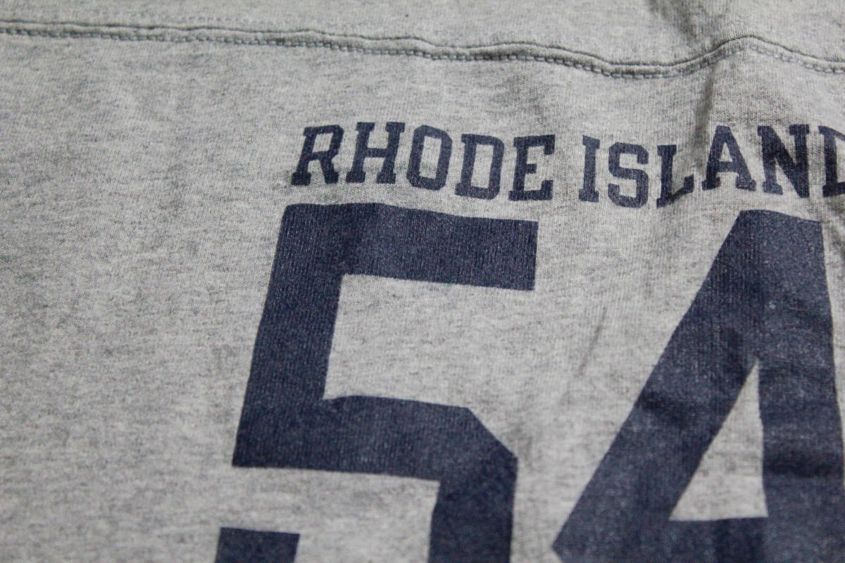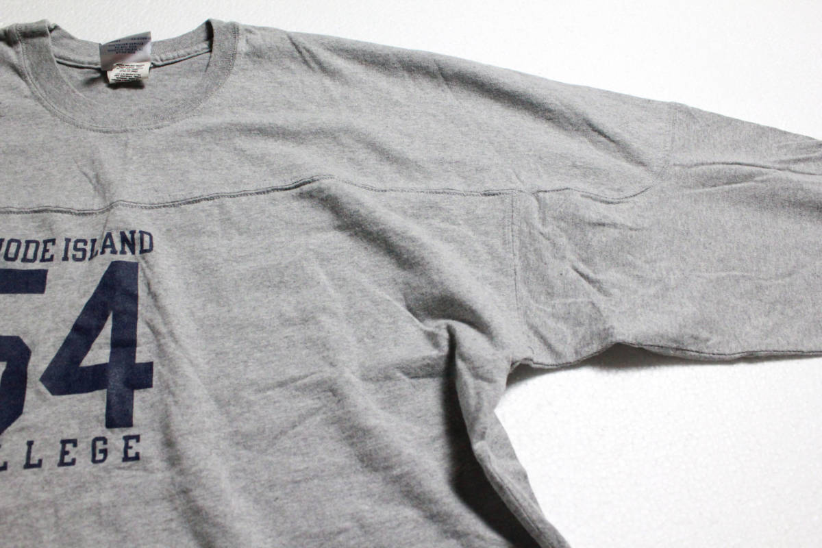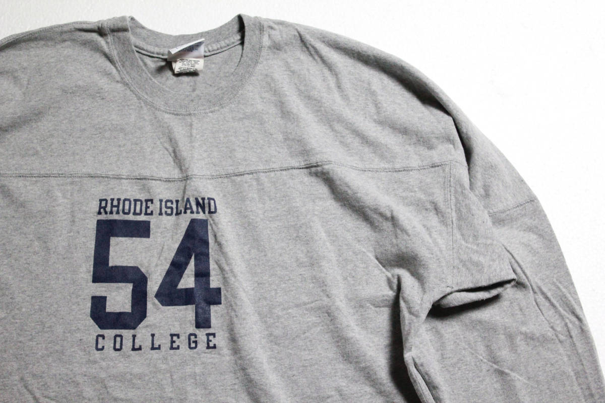 フロントに3段のラバーカレッジプリント、袖にCポイント入り。