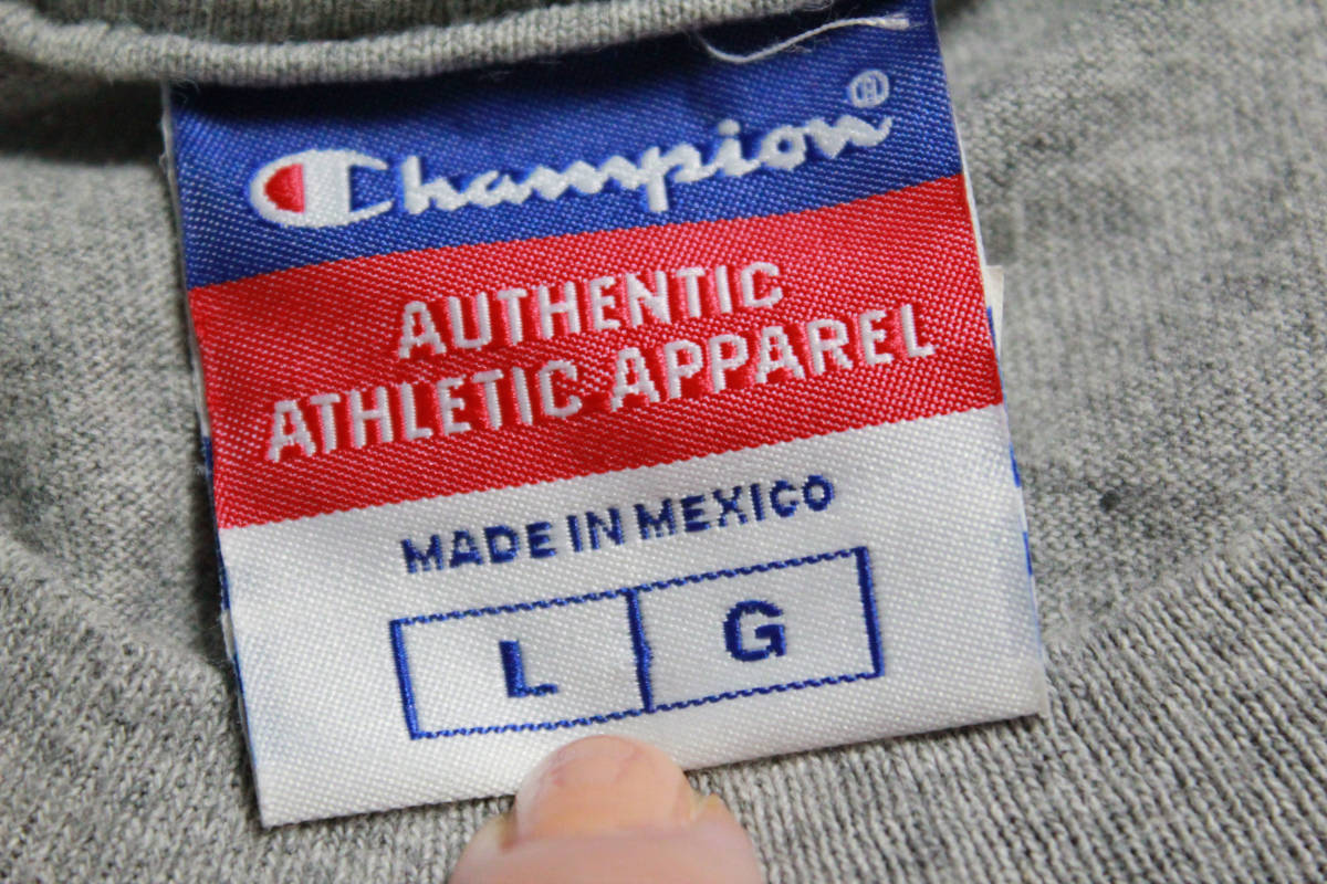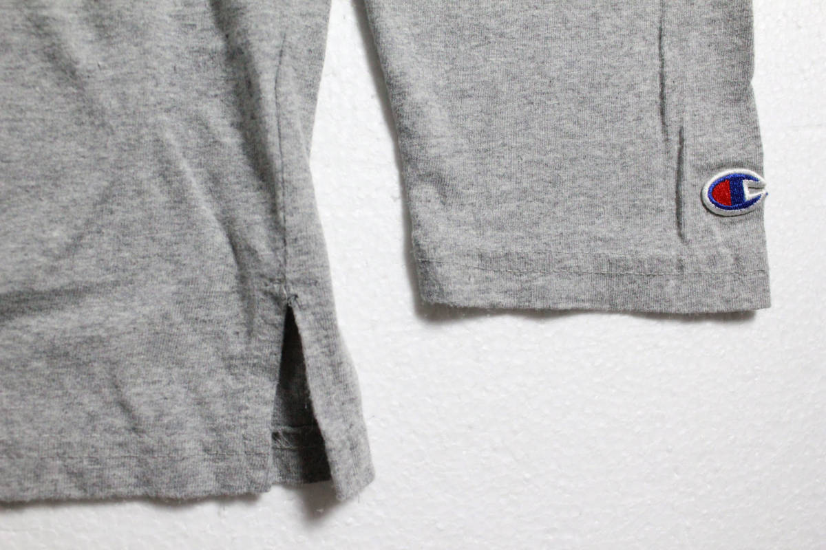 デッドストック 00's チャンピオン フットボールTシャツ (L) カレッジプリント 霜降りグレー 灰 champion