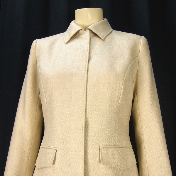 H 美品★SOLO PLUS YURIE NITANI ソロプラス ユリエニタニ★淡エクルベージュ系*上品リネン風織生地*美形スカートスーツ★38(M*9号相当)