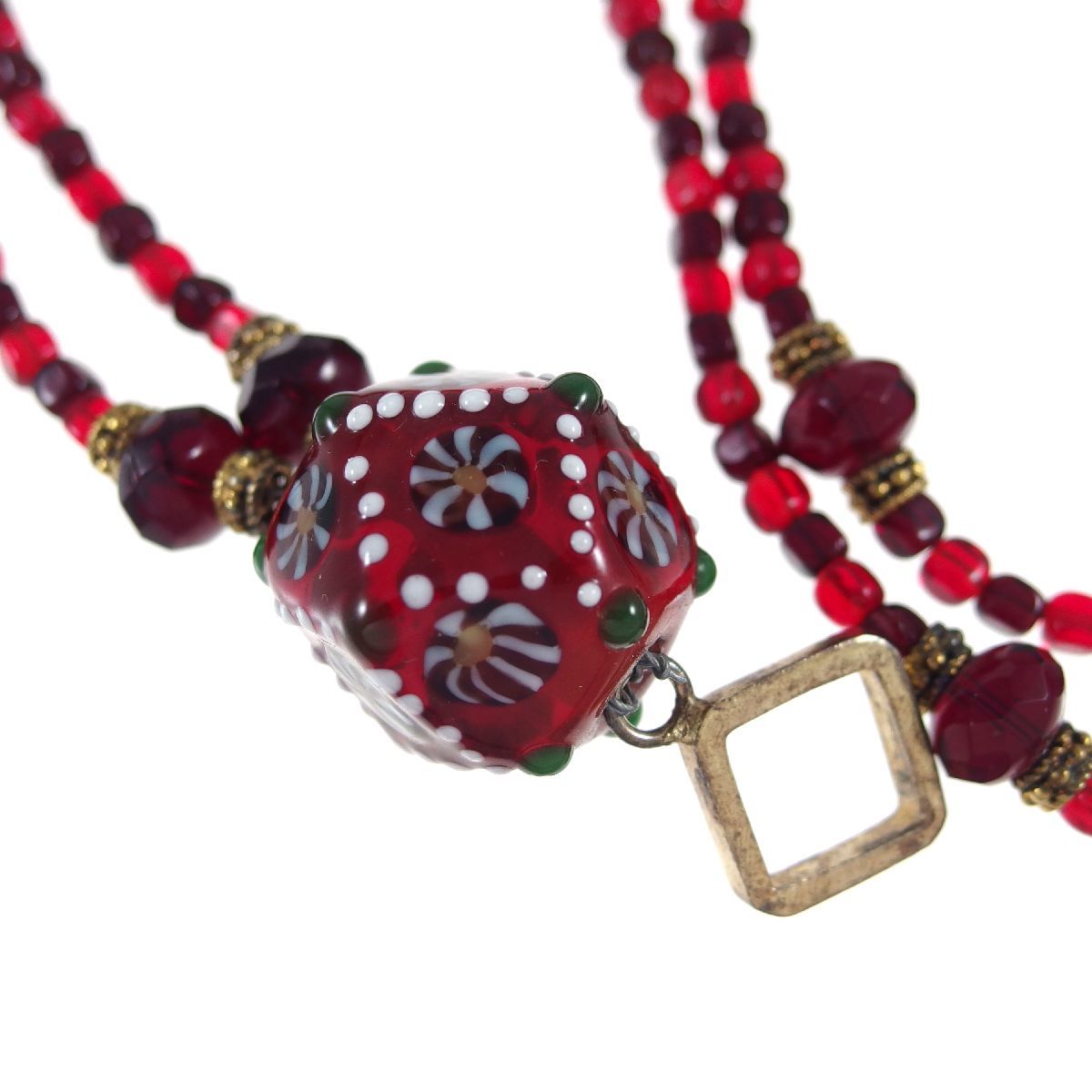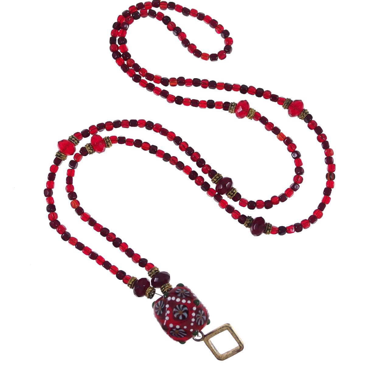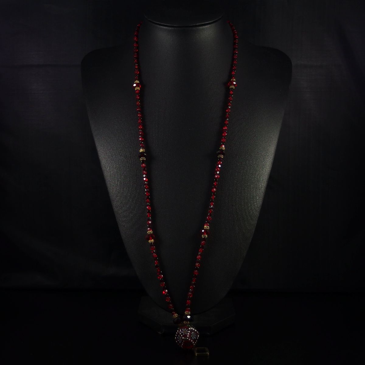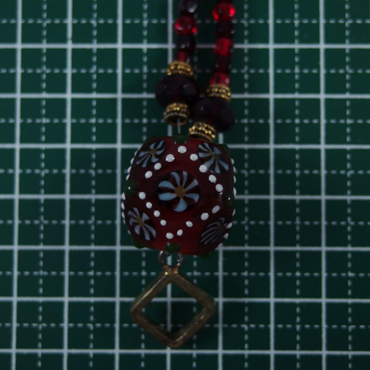 A3901◆ ヴィンテージネックレス ◆ 赤いアートガラスのペンダント ◆ 長さ76㎝ ◆