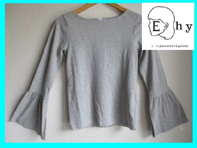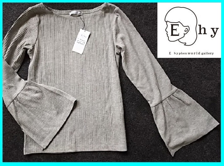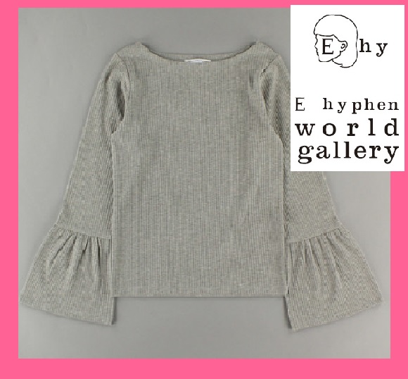 未使用タグ付 イーハイフンワールドギャラリーフレアスリーブリブプルオーバーE hyphen world gallery グレー