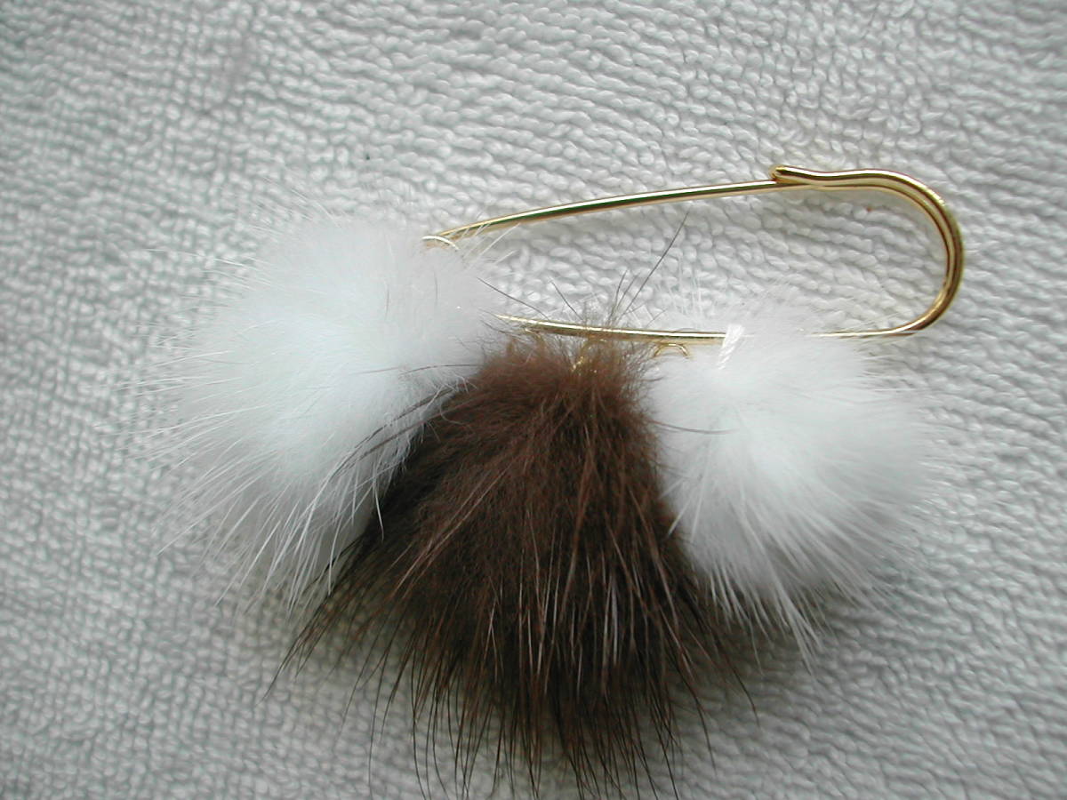 ブローチ ふわふわ毛皮が色違い3個付 5cm