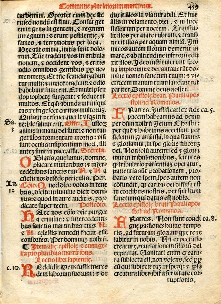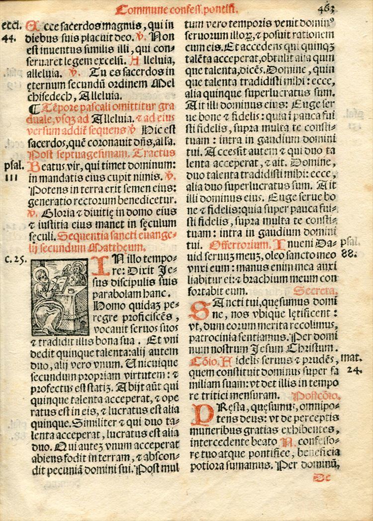 薄い手漉き紙の表裏両面にラテン語で赤と黒のインクを用いて印刷されています。