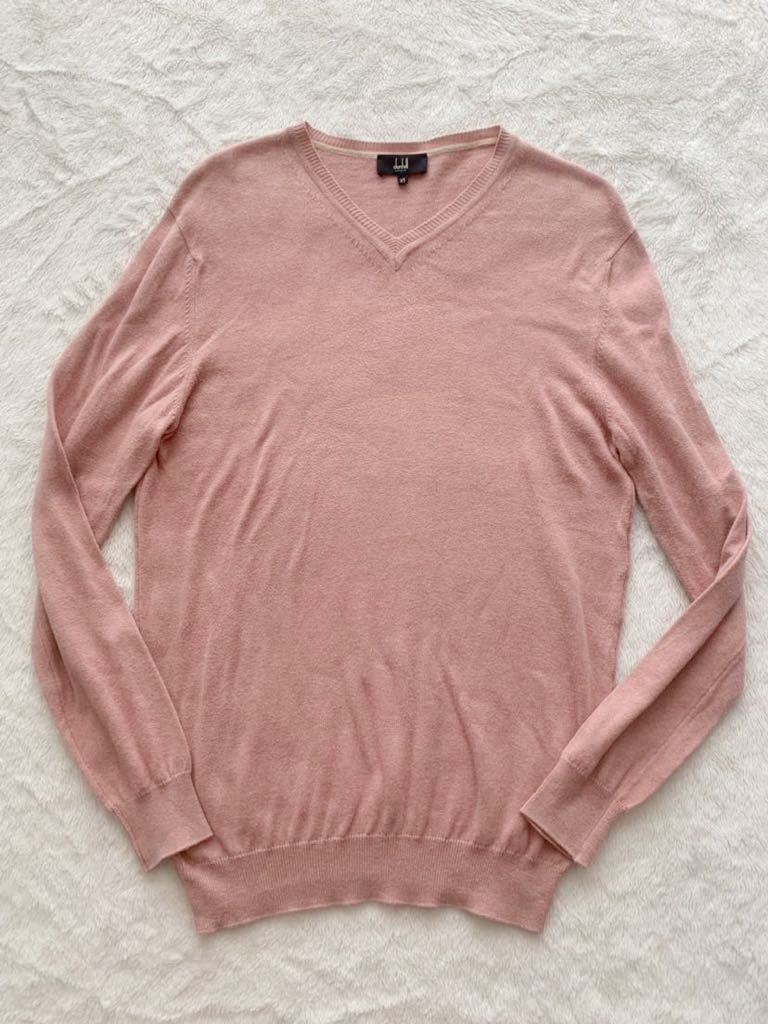 dunhill LONDON スコットランド製コットンセーター sizeXS ダンヒル ロンドン メンズ Vネックセーター ピンク 国内正規
