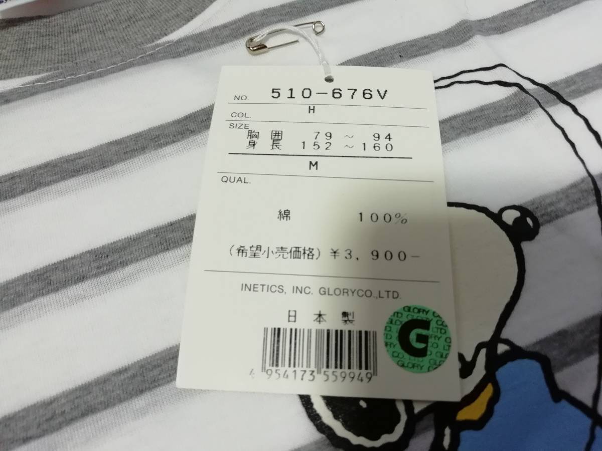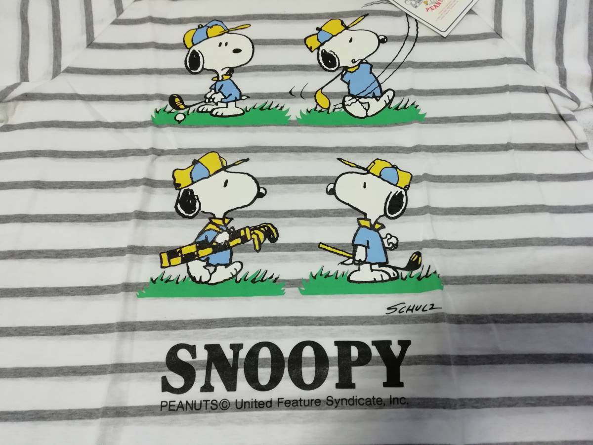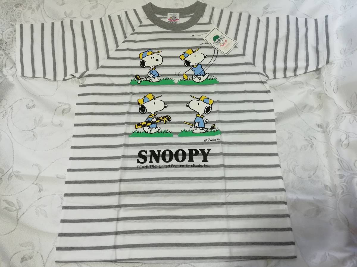 送料込み レトロ PEANUTS スヌーピー レディース 半袖 Tシャツ 白グレー Mサイズ 日本製 綿100% タグあり 25年以上前の物 新品