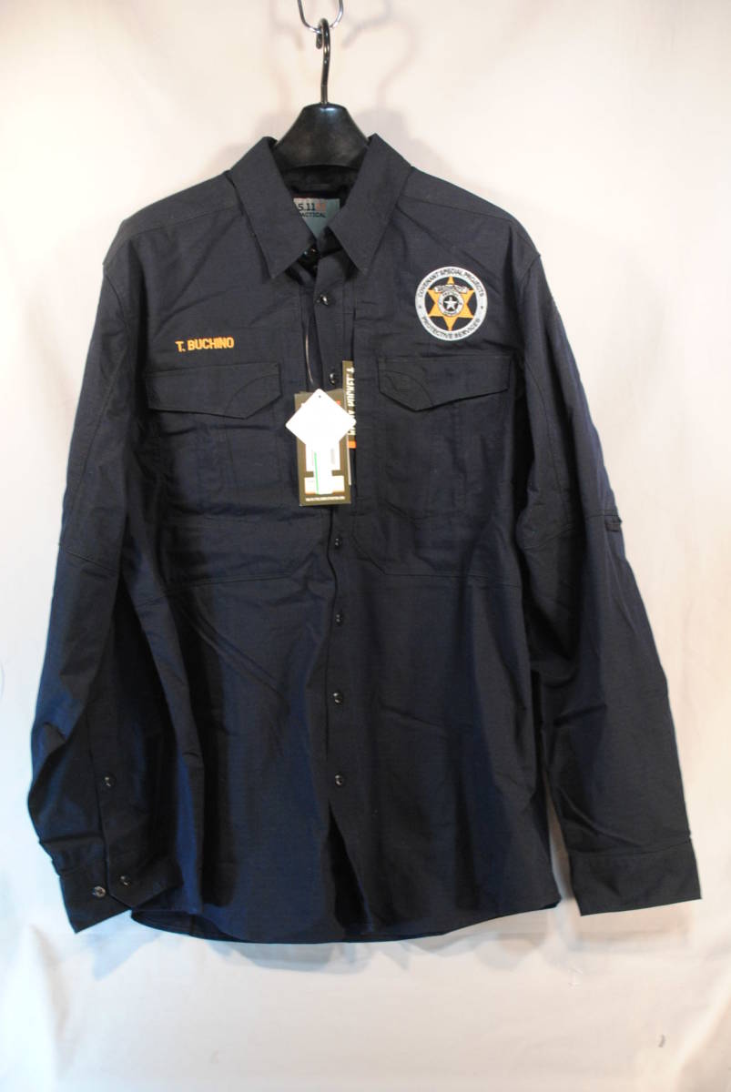 19 新品 長袖 ワークシャツ Goverment Special Project Protective Service 警備員 T.Buchino 5.11 Tactical Series社製 ポリ62% 綿38%