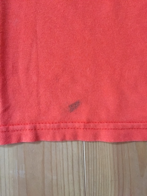 首周り等一部多少の日焼け跡はありますが、ヴィンテージの雰囲気が良く出た一品です。画像のように、左腕と右腹部に小さなハンドリペアと裾に薄いシミがありますが、古着慣れしている方であれば全く気にならない程度だと思います。