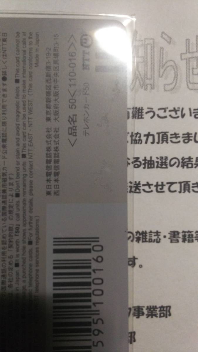 画像二枚目、三枚目、裏にテレカ初期にたまにあるぶつぶつがあります。