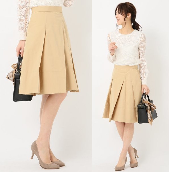 ななめのラインにタックが入ったフレアースカートです。 ななめに入れたタックにより、フレアーが強調されふんわり感が増しています。 ベーシックなデザインでトップスを選ばずお使いいただけます。