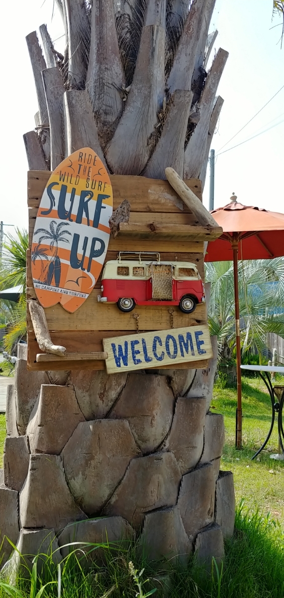 いかにも南国風景の可愛いワーゲンバスのディスプレイボード(*^^*)