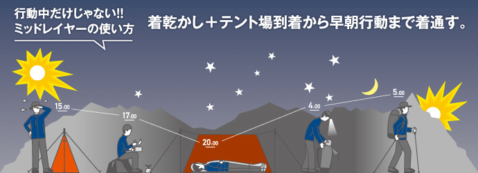 <着たまま乾かせる定番のミッドレイヤー>