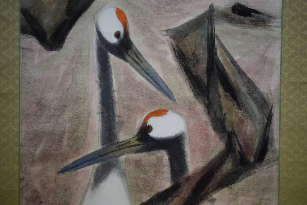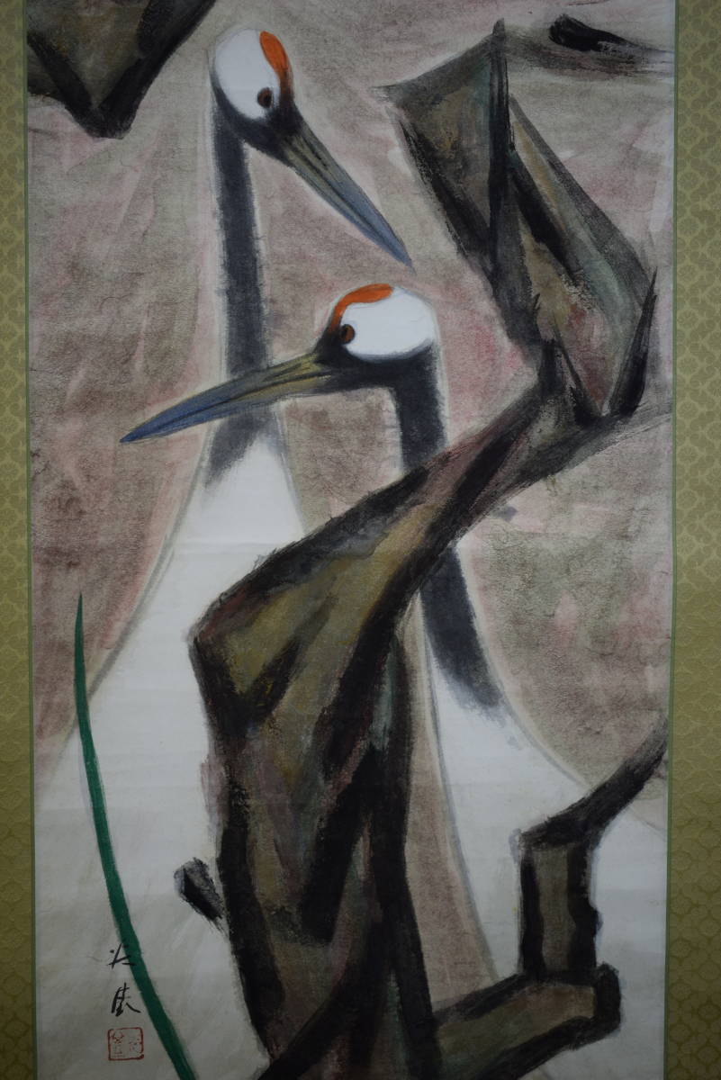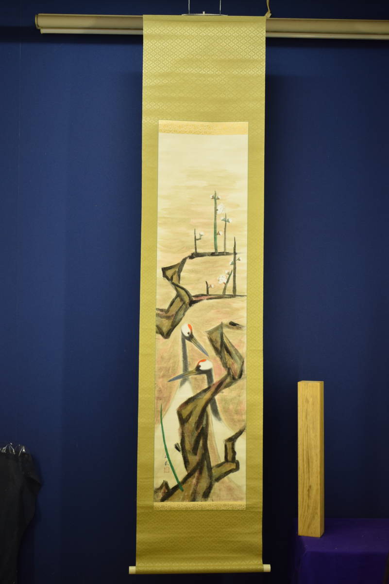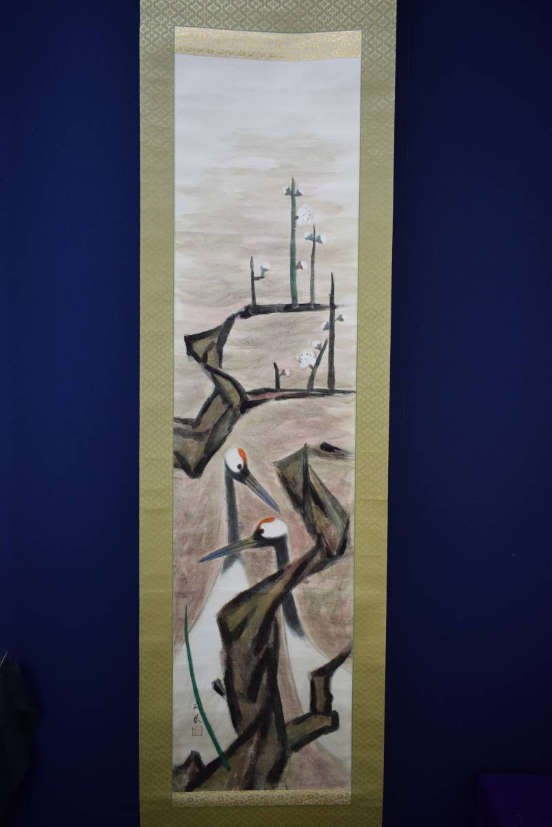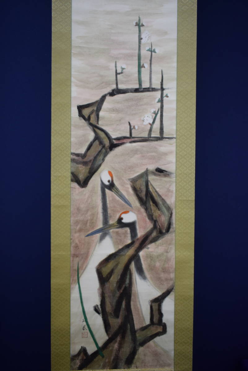 【真作】//戸島光基/梅に双鶴図/布袋屋掛軸HG-510